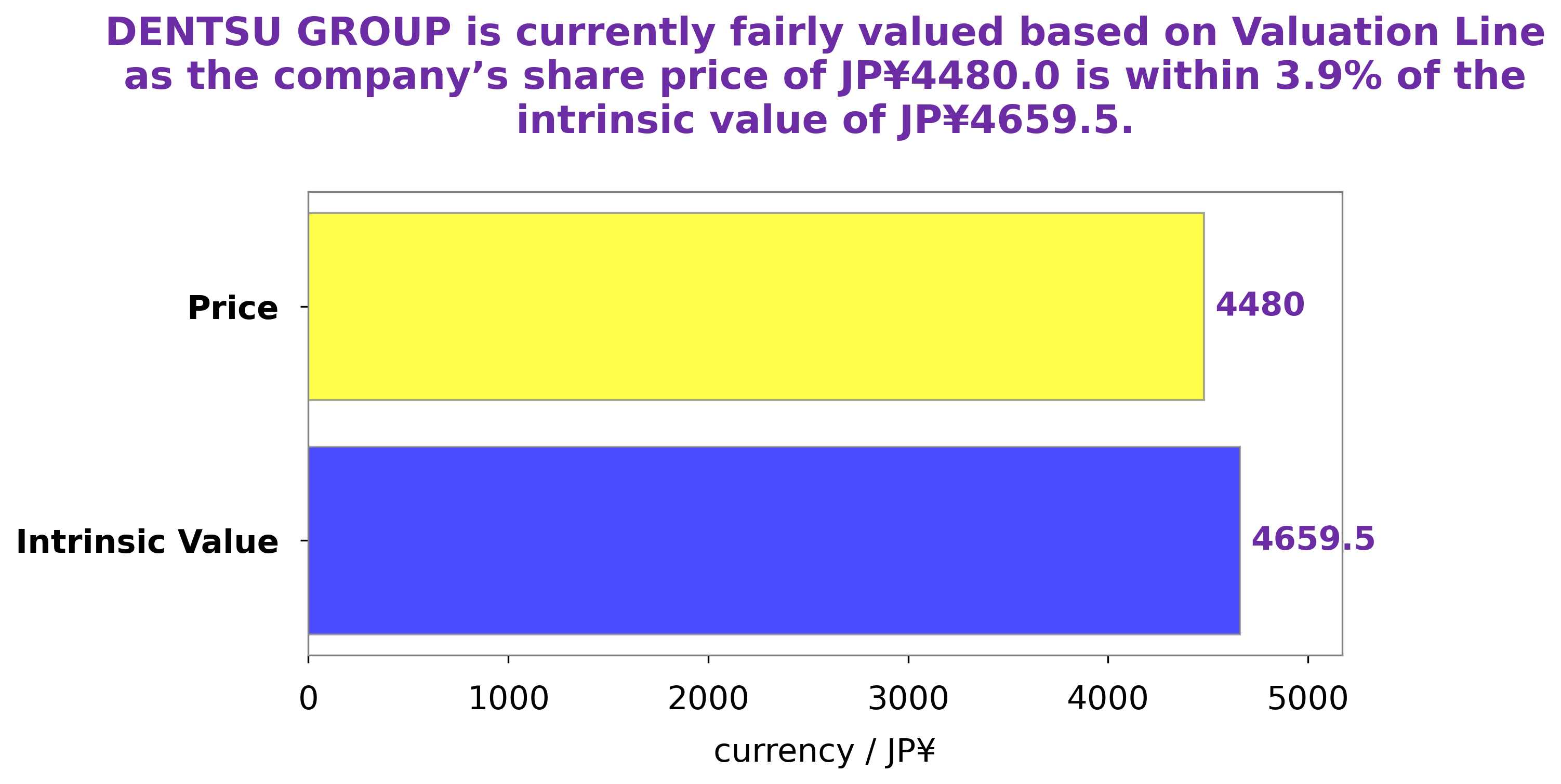 At GoodWhale, we have conducted an analysis of the financials of DENTSU GROUP. Our proprietary Valuation Line has calculated that the fair value of DENTSU GROUP’s share is approximately JP¥4659.5. Currently, DENTSU GROUP’s stock is being traded at JP¥4480.0, making it a fair price that is slightly undervalued by 3.9%. More…