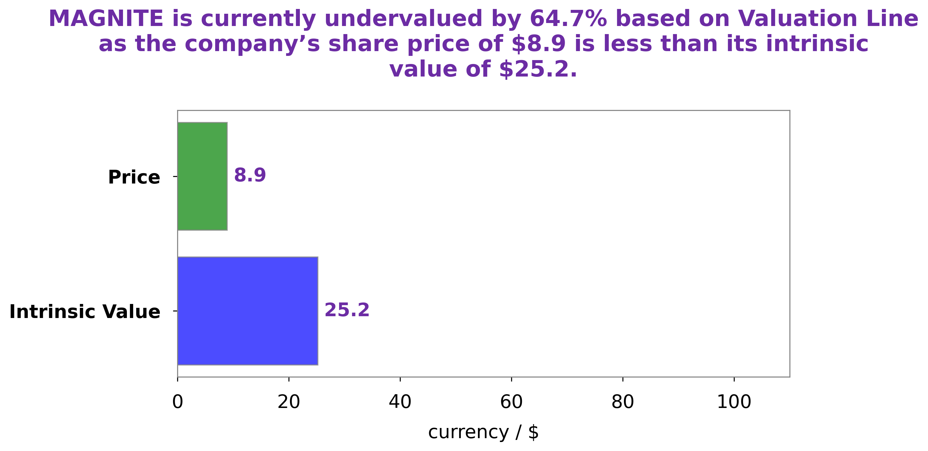 We at GoodWhale conducted an analysis of MAGNITE’s financials and have come up with a fair value of its stock of around $25.2. This figure was calculated using our proprietary Valuation Line. At the time of writing, MAGNITE’s stock is being traded at $8.9, meaning that it is undervalued by an astounding 64.7%. It’s possible to take advantage of this significant discrepancy by buying into the stock while it’s still trading at its current low price. Magnite_to_Restructure_Global_Workforce_After_SpotX_Acquisition”>More…