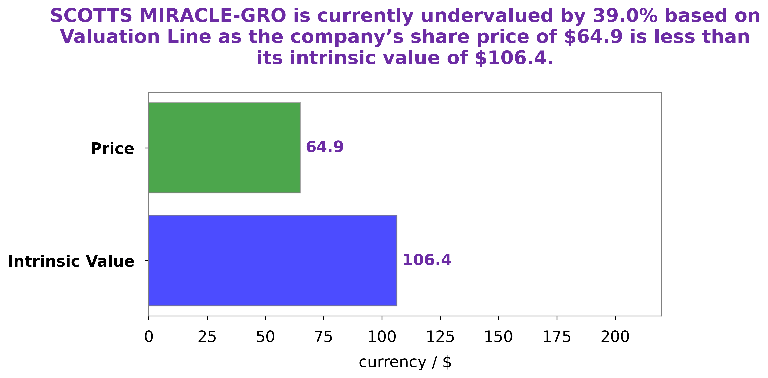 At GoodWhale, we analyzed SCOTTS MIRACLE-GRO‘s financials to determine the intrinsic value of its stock. After taking into account the company’s fundamentals, we calculated that the intrinsic value of each share of SCOTTS MIRACLE-GRO is around $106.4 using our proprietary Valuation Line. As of today, SCOTTS MIRACLE-GRO’s stock is trading at $64.9, representing a 39.0% discount to the intrinsic value of its stock. This indicates that SCOTTS MIRACLE-GRO’s stock is currently undervalued and presents an attractive opportunity for investors. More…