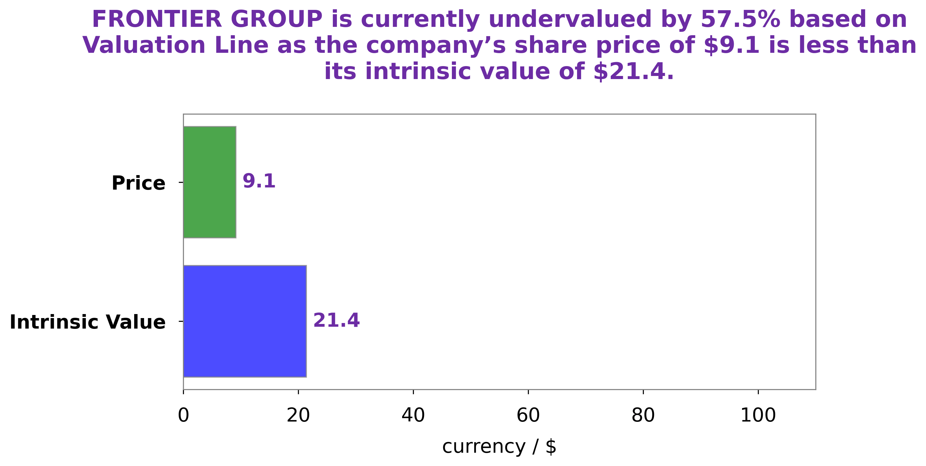 At GoodWhale, we have performed an analysis of FRONTIER GROUP‘s financials and our proprietary Valuation Line has calculated the fair value of a FRONTIER GROUP share at around $21.4. By comparison, the stock is currently trading at $9.1, which represents a 57.4% discount to its fair value. This strongly suggests that FRONTIER GROUP’s stock is significantly undervalued and presents an attractive long-term investment opportunity. More…