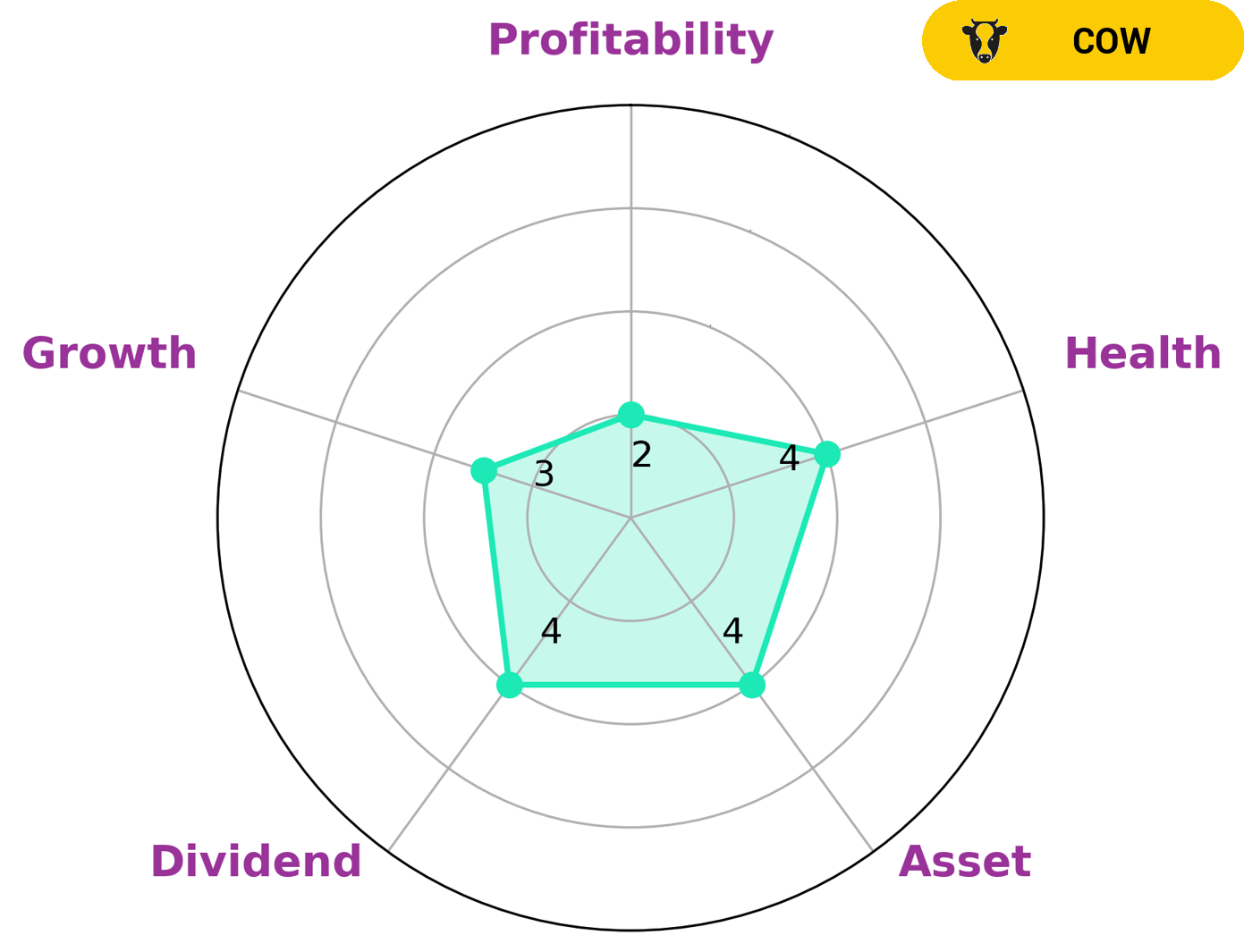 GoodWhale conducted an analysis of GLADSTONE INVESTMENT‘s wellbeing and, based on our Star Chart, classified the company as a ‘cow’. We concluded that this type of company has a track record of paying out consistent and sustainable dividends. The analysis revealed that GLADSTONE INVESTMENT has an intermediate health score of 4/10 with regard to its cashflows and debt, indicating that it is likely to sustain future operations in times of crisis. While GLADSTONE INVESTMENT is strong in assets and dividend, it is weak in growth and profitability. Given its solid dividend record and intermediate health score, this type of company may be attractive to investors who are looking for a steady return but may not be interested in investing in higher-risk, higher-growth enterprises. More…