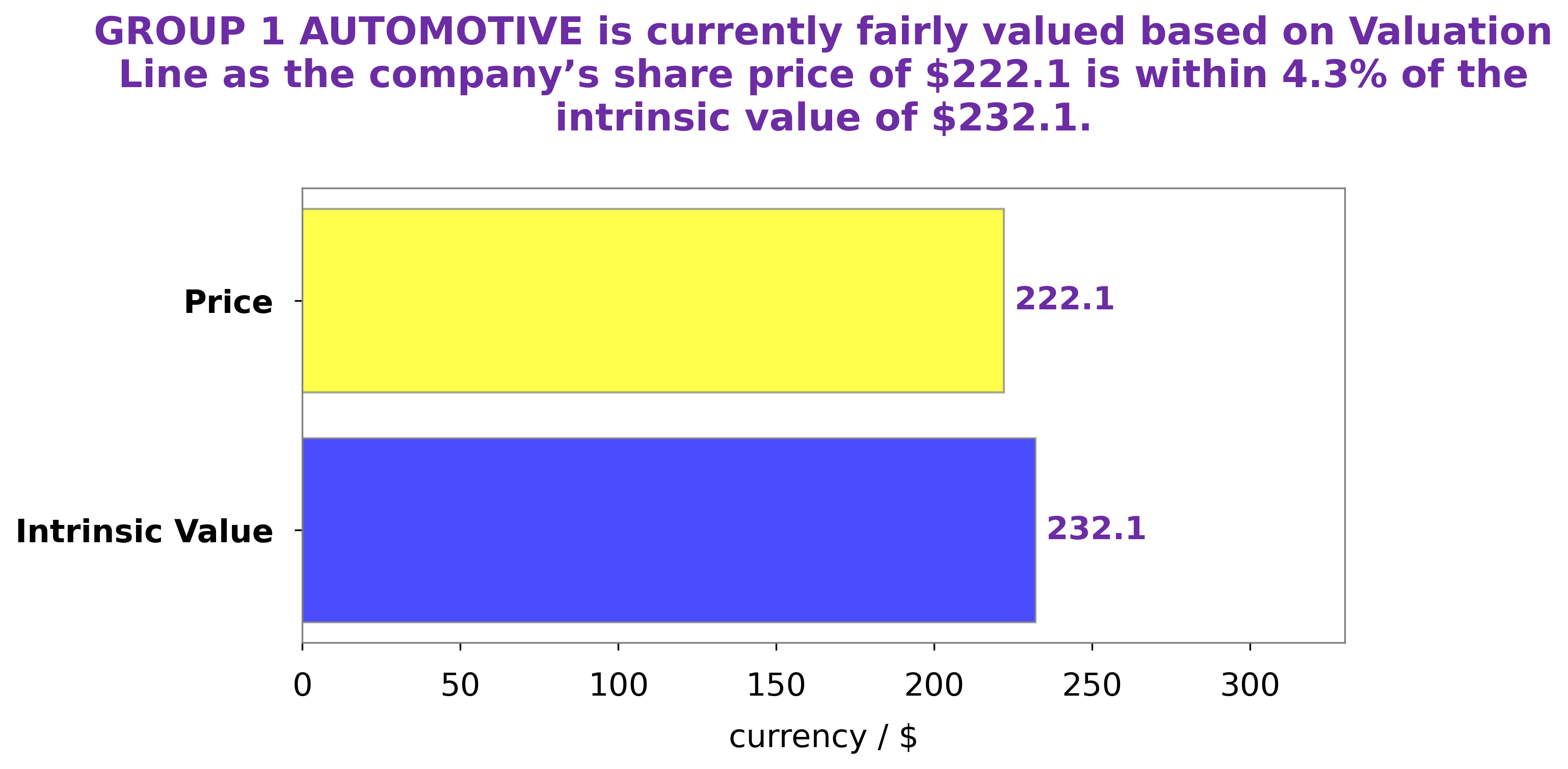 GoodWhale has completed an analysis of GROUP 1 AUTOMOTIVE’s fundamentals and we have calculated the fair value of their share to be around $232.1. This figure was determined through our proprietary Valuation Line which takes into account key metrics such as price-to-earnings and price-to-book ratios. Currently, GROUP 1 AUTOMOTIVE is trading at $222.1, which represents a fair price that is undervalued by 4.3%. From an investment perspective, this could be a potentially attractive opportunity for investors looking to capitalize on this potential discount. More…