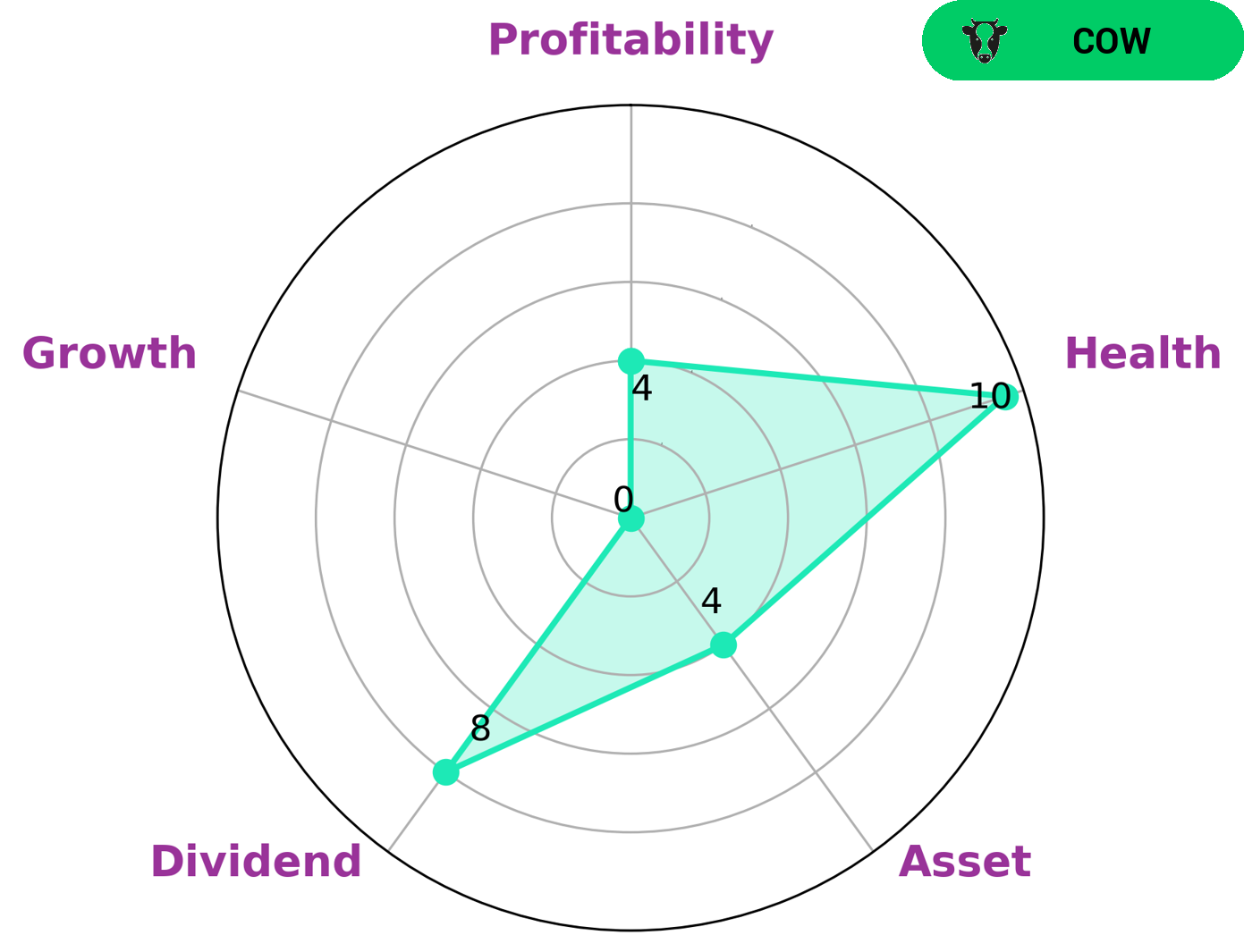 GoodWhale’s analysis of WELLS FARGO shows that the company has a strong dividend, medium profitability, asset and weak growth. Its classification as a ‘cow’ indicates that WELLS FARGO has a track record of paying out consistent and sustainable dividends to investors. The company’s high health score of 10/10 indicates that it has sufficient cashflows and debt to safely ride out any crisis or economic downturn without the risk of bankruptcy. As such, WELLS FARGO is suitable for conservative investors who are looking for regular income through dividends or retirees who are looking for reliable income streams. It is also attractive to investors who are looking for long term capital appreciation as it has a strong balance sheet and is able to pay out dividends even during times of economic downturn. Furthermore, it is attractive to those looking for value investments, as its stock price may be undervalued due to its weaker growth prospects. Overall, WELLS FARGO has many different qualities that make it attractive to different types of investors. Its strong balance sheet and high health score make it a safe investment, while its dividends and potential for capital appreciation make it an attractive choice for those looking for long-term investments. More…