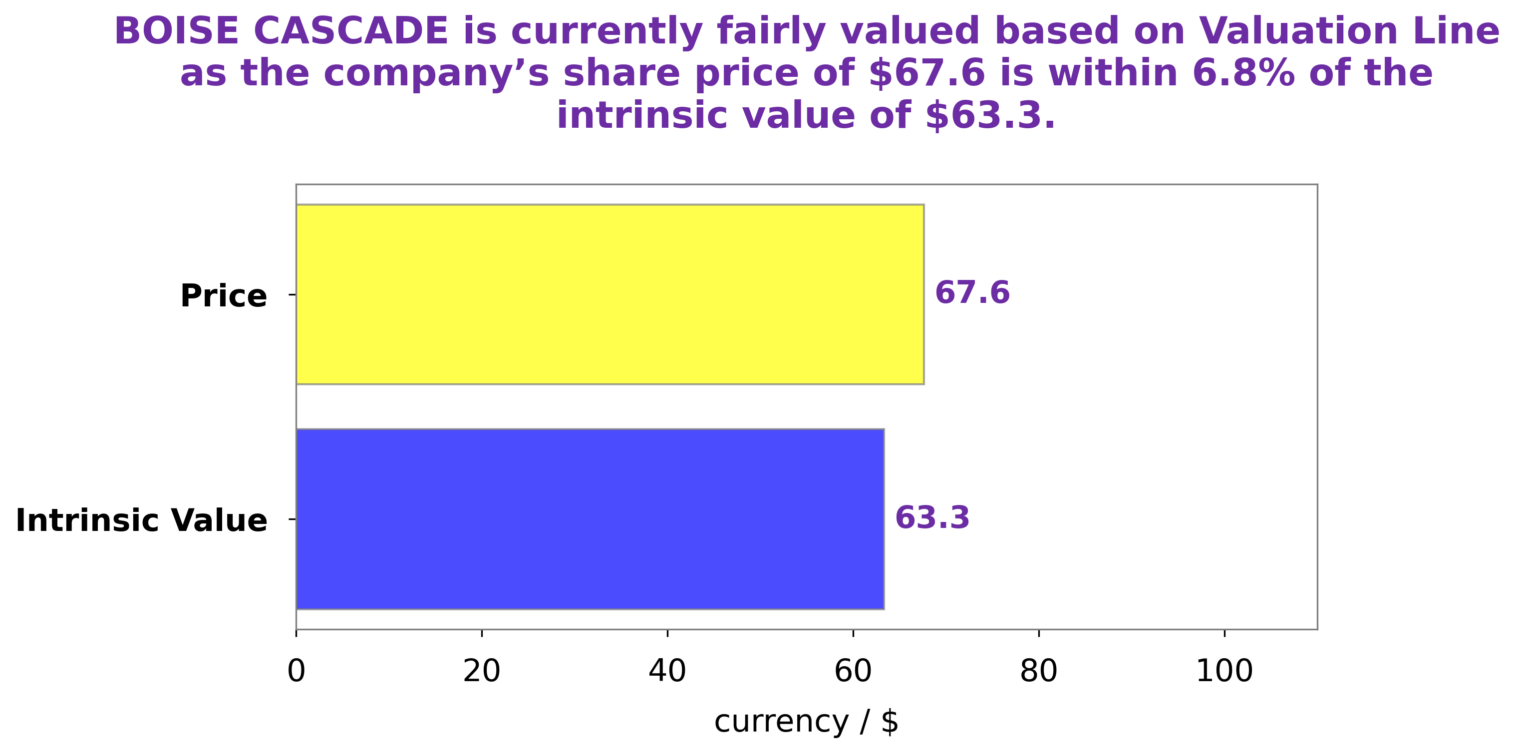 At GoodWhale, we have conducted an analysis of BOISE CASCADE’s wellbeing. Our proprietary Valuation Line calculated a fair value of the BOISE CASCADE share at around $63.3. Currently, BOISE CASCADE stock is traded at $67.6, which implies a fair price that is overvalued by 6.7%. We believe that this is an important piece of information for any investor who is looking to invest in BOISE CASCADE. More…