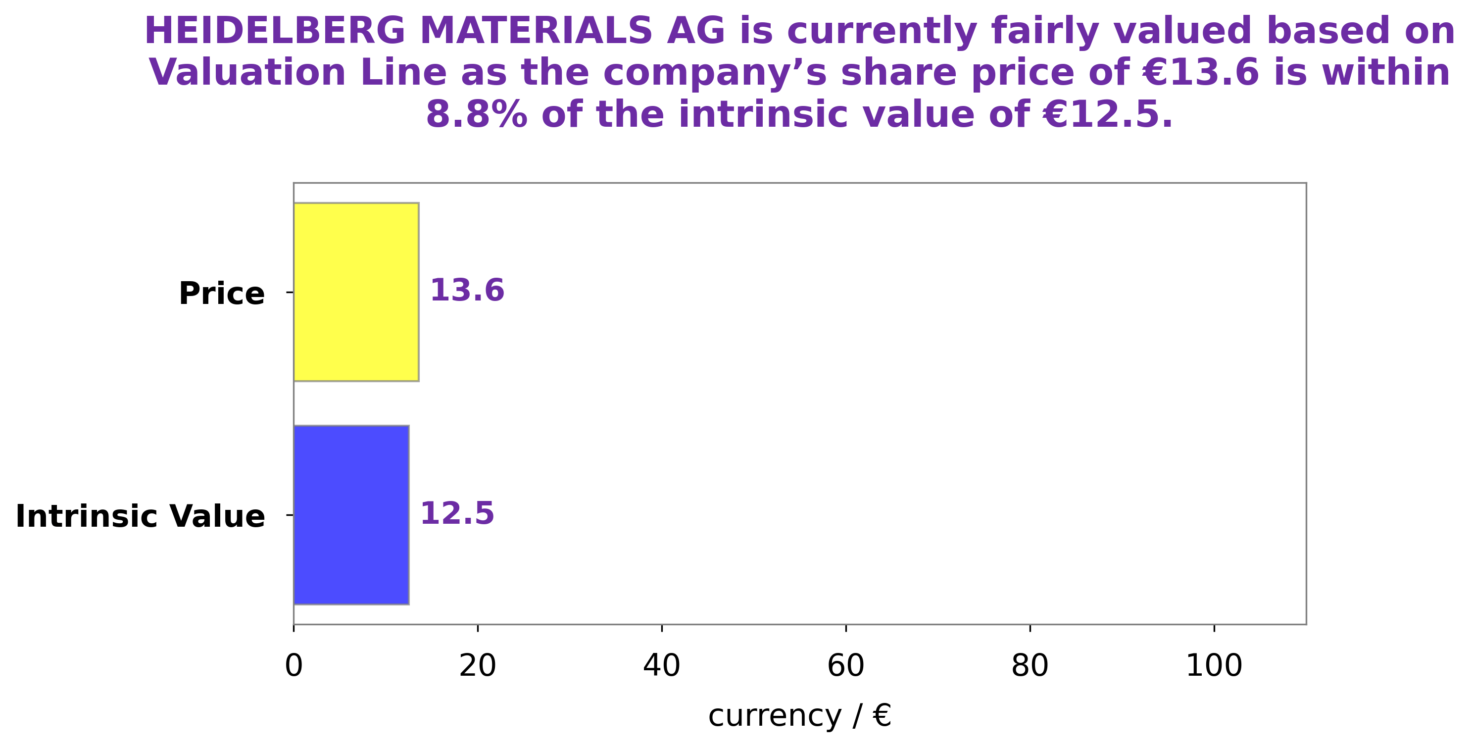 GoodWhale has conducted an analysis of HEIDELBERG MATERIALS AG’s wellbeing, and our proprietary Valuation Line has calculated the intrinsic value of HEIDELBERG MATERIALS AG shares to be around €12.5. We have found that the current market price of the stock is €13.6, which is a fair price but slightly overvalued by 8.8%. This indicates that investors may want to wait for a potential drop in the price of the stock before making a decision to invest. More…