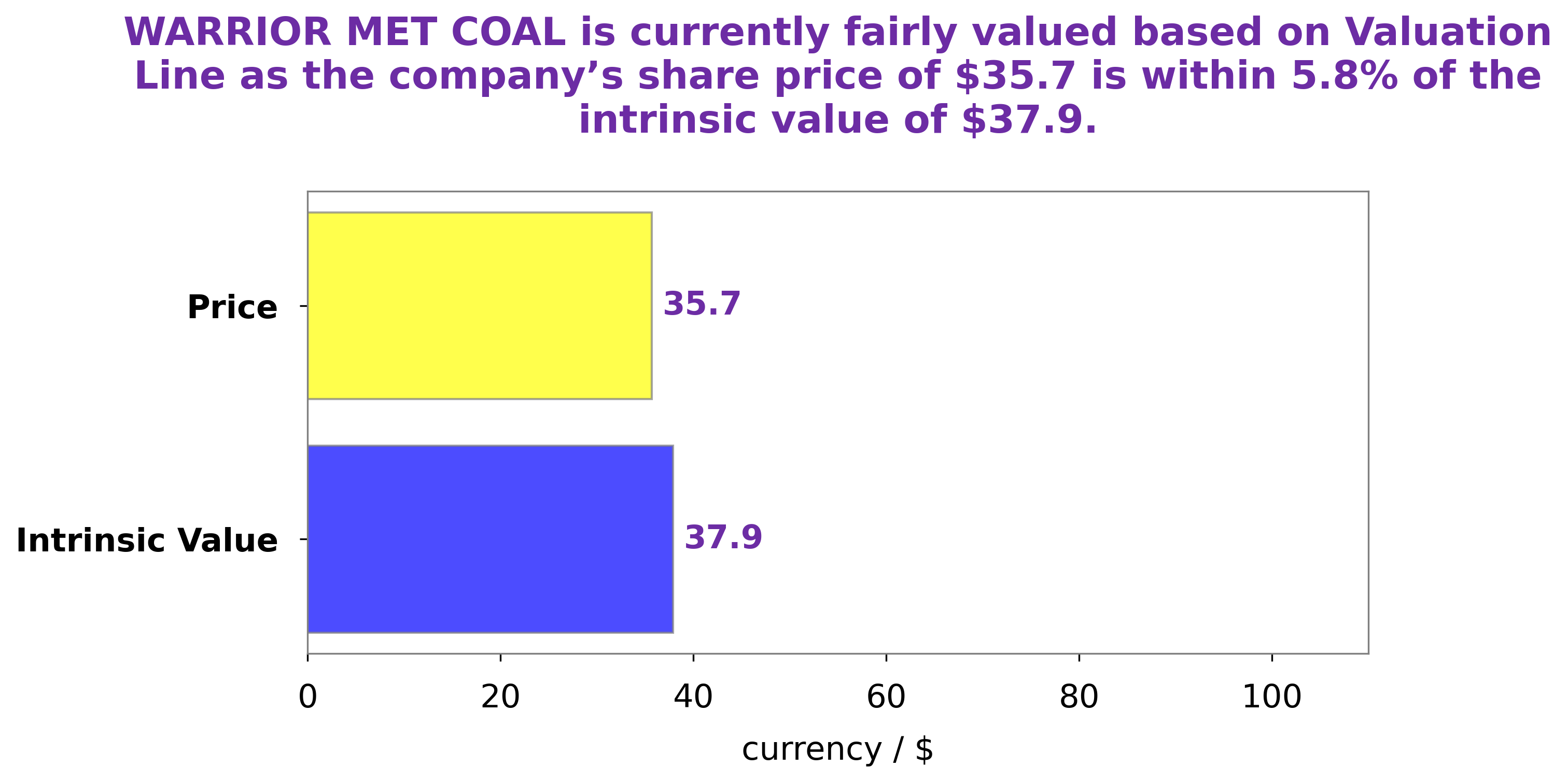 At GoodWhale, we have conducted an analysis of WARRIOR MET COAL’s financials to determine its intrinsic value. According to our proprietary Valuation Line, the intrinsic value of WARRIOR MET COAL share is around $37.9. Currently, the stock is traded at $35.7, which represents a fair price that is slightly undervalued by 5.7%. Given this analysis, we recommend WARRIOR MET COAL as a good investment opportunity. More…