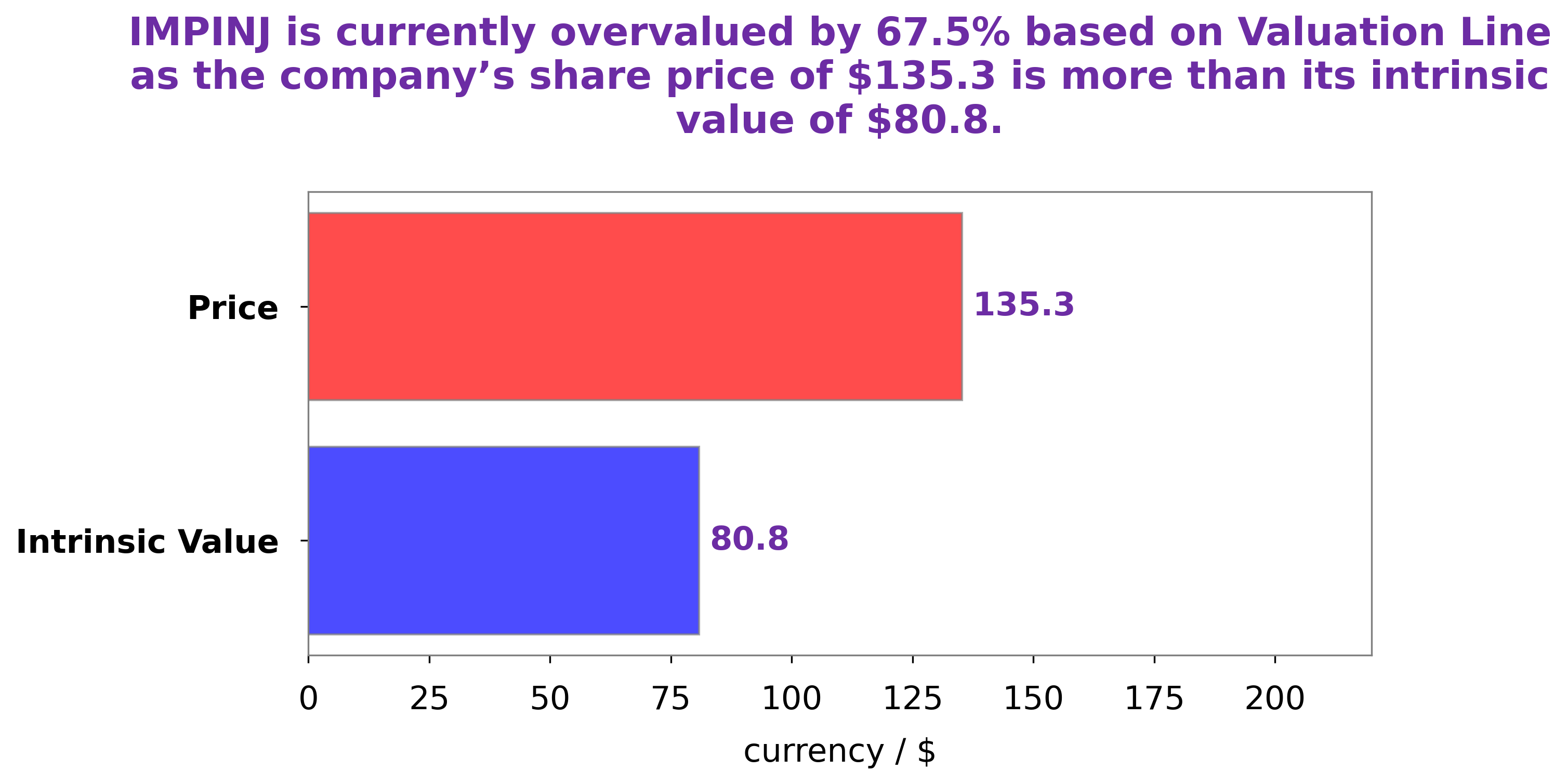 At GoodWhale, we conducted an in-depth analysis of Impinj‘s financials, and have concluded that the intrinsic value of their share is approximately $80.8. This value was calculated using our proprietary Valuation Line. However, Impinj’s current stock price is $135.3, meaning that it is overvalued by 67.5%. This may be due to the market’s enthusiasm for Impinj’s prospects, but investors should be aware of the discrepancy between the stock’s true value and its current trading price. More…