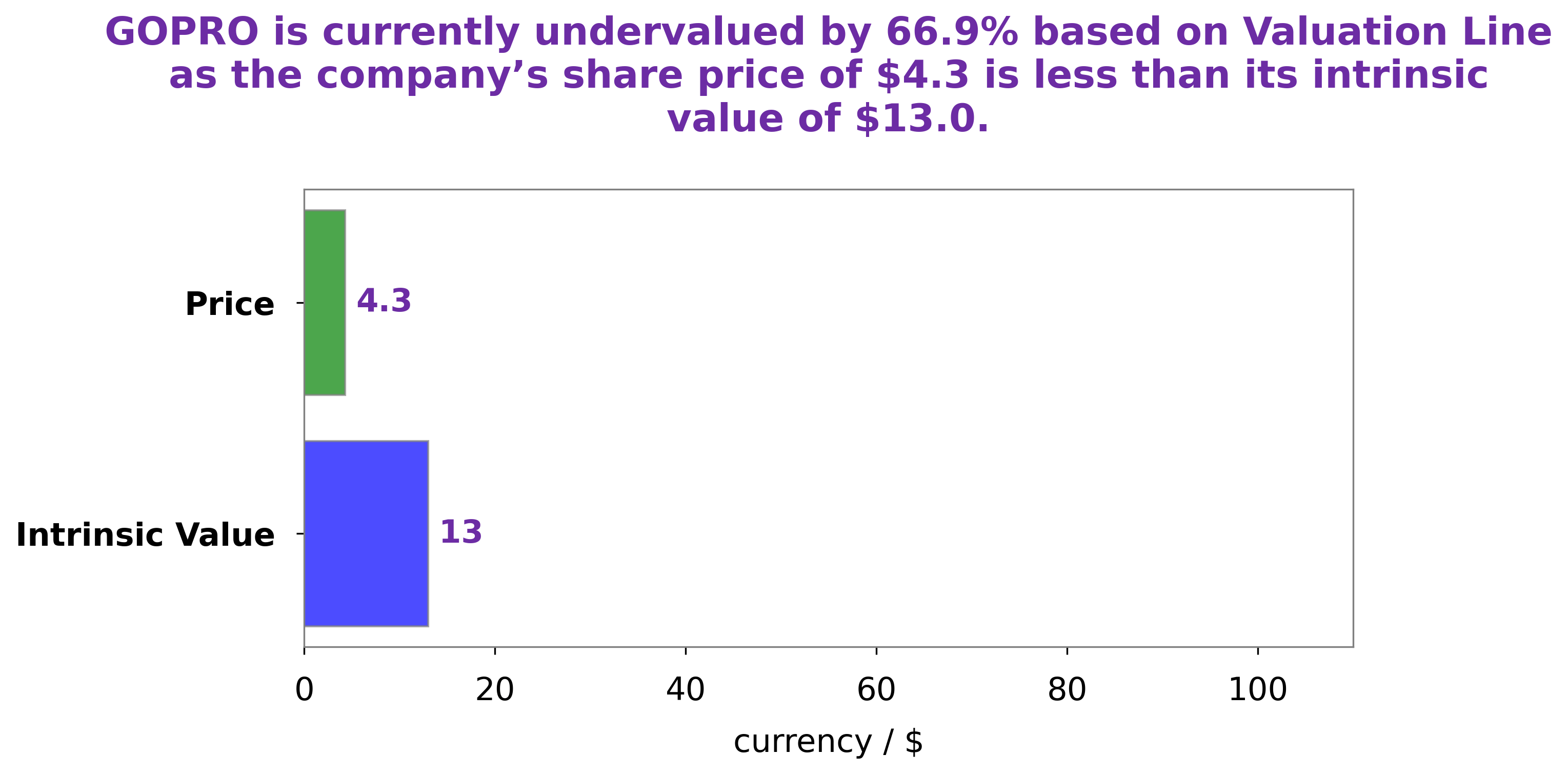 At GoodWhale, we recently conducted an analysis of GOPRO‘s wellbeing. After careful consideration of the company’s financials and market conditions, we determined that the fair value of GOPRO’s share was around $13.0. This calculation was made using our proprietary Valuation Line tool, which takes into account multiple factors before arriving at a fair estimate. Currently, the market price of GOPRO stock is much lower, trading at only $4.3. This represents an undervaluation of 67.0%, indicating a potential buying opportunity for savvy investors who are looking to take advantage of this significant gap between the current market price and the fair value calculated by our Valuation Line tool. More…