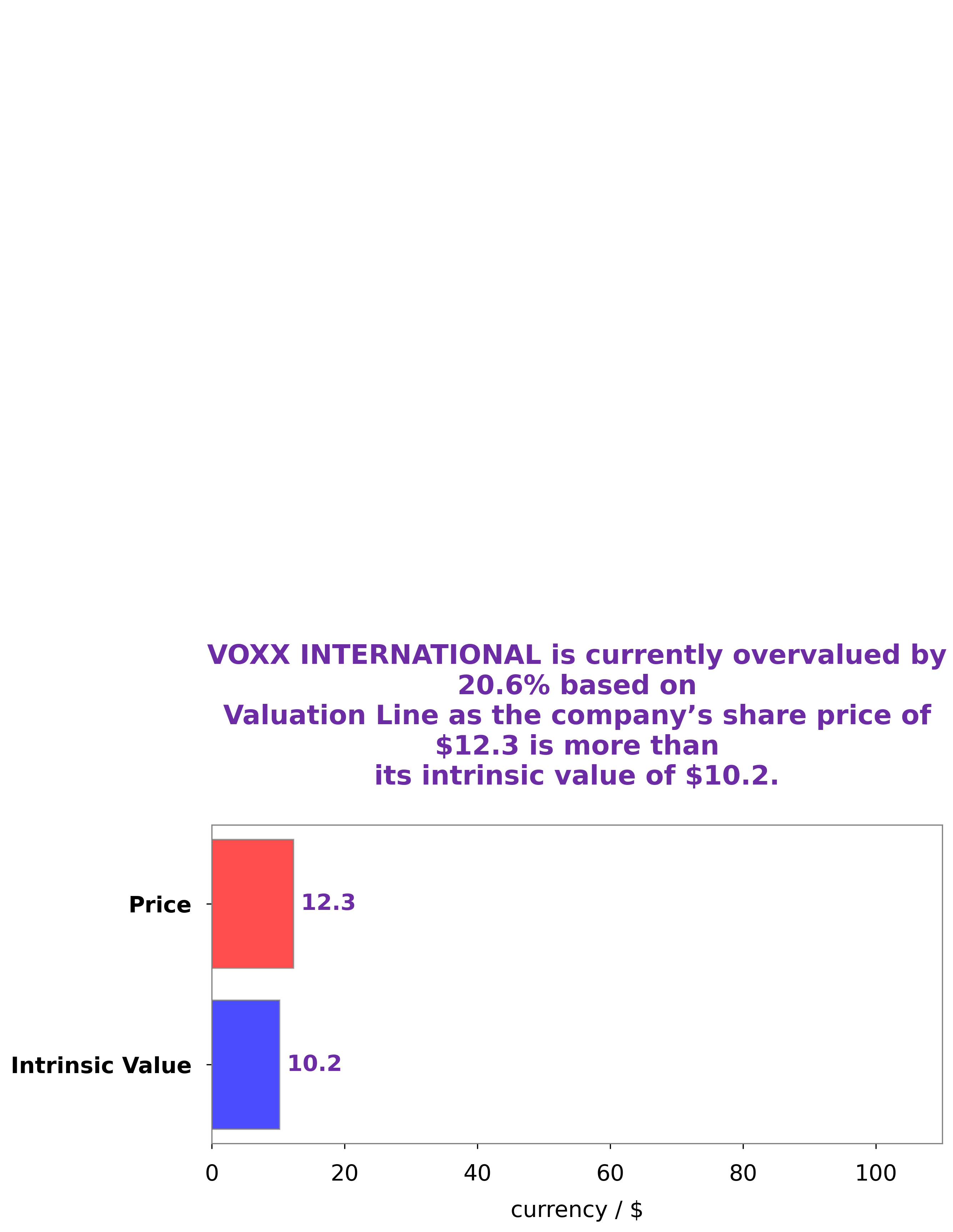 As a part of our financial analysis, GoodWhale has conducted an analysis of VOXX INTERNATIONAL‘s financials and have come up with a fair value of the company’s share at around $10.2. This calculation was done using our proprietary Valuation Line. Currently, VOXX INTERNATIONAL’s stock is traded at a price of $12.3, which is overvalued by 20.4%. More…