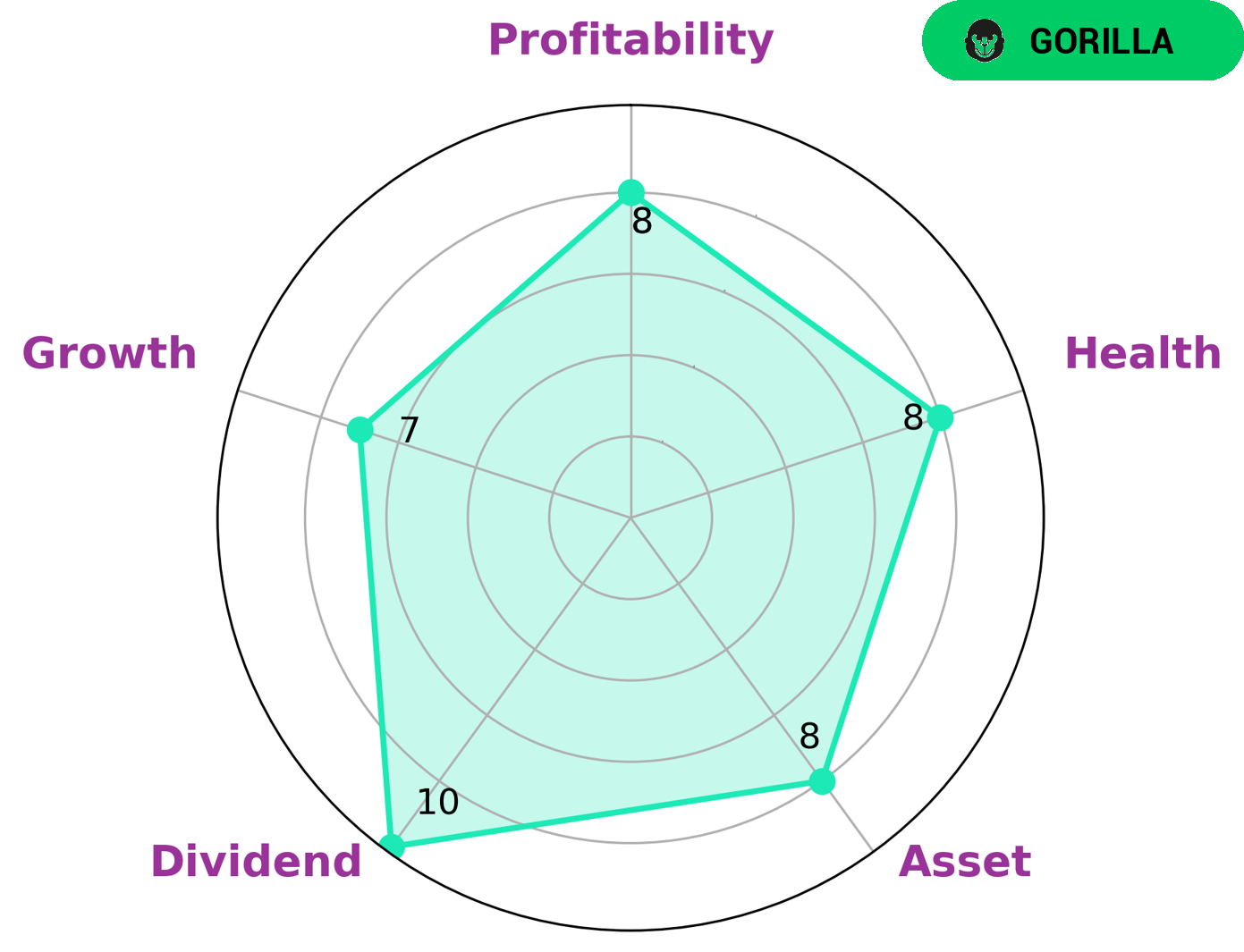 GoodWhale has conducted an analysis of DOLLAR GENERAL‘s fundamentals and classified them as ‘gorilla’ using the Star Chart. This type of company typically has a strong competitive advantage that allows it to achieve stable and high revenue or earnings growth. Investors who are interested in such companies are those who are looking for a value play, as DOLLAR GENERAL has strong assets, dividends, growth, and profitability. Additionally, DOLLAR GENERAL has a high health score of 8/10, which indicates that its cashflows and debt are well managed, making them capable of paying off debt and funding future operations. More…