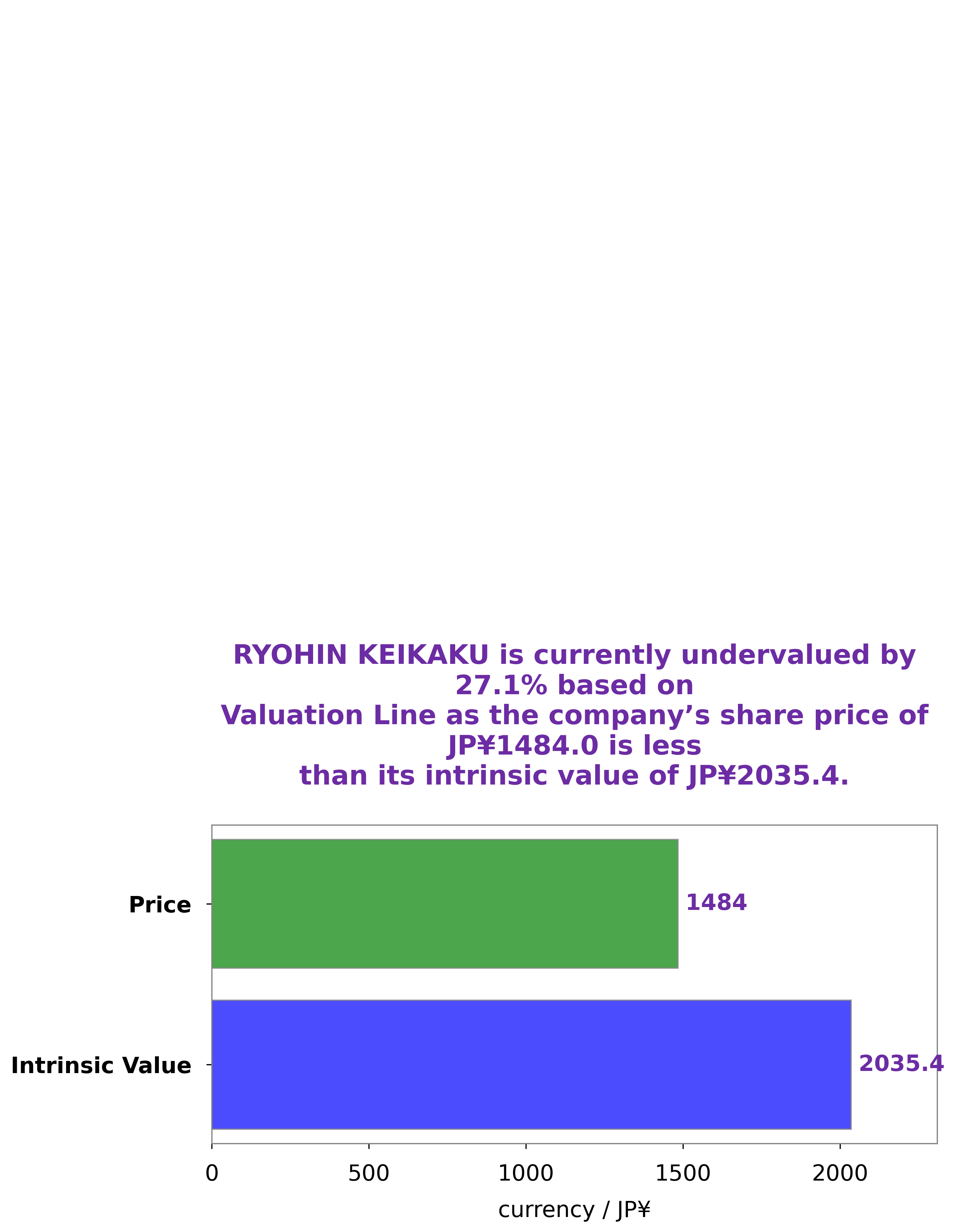 At GoodWhale, we conducted an analysis of RYOHIN KEIKAKU‘s fundamentals. We determined that the intrinsic value of their shares is around JP¥2035.4, which we calculated using our proprietary Valuation Line. Currently, the RYOHIN KEIKAKU stock is trading at JP¥1484.0, meaning it is undervalued by 27.1%. Our analysis suggests there is potential opportunity for investors to benefit from this discrepancy. More…