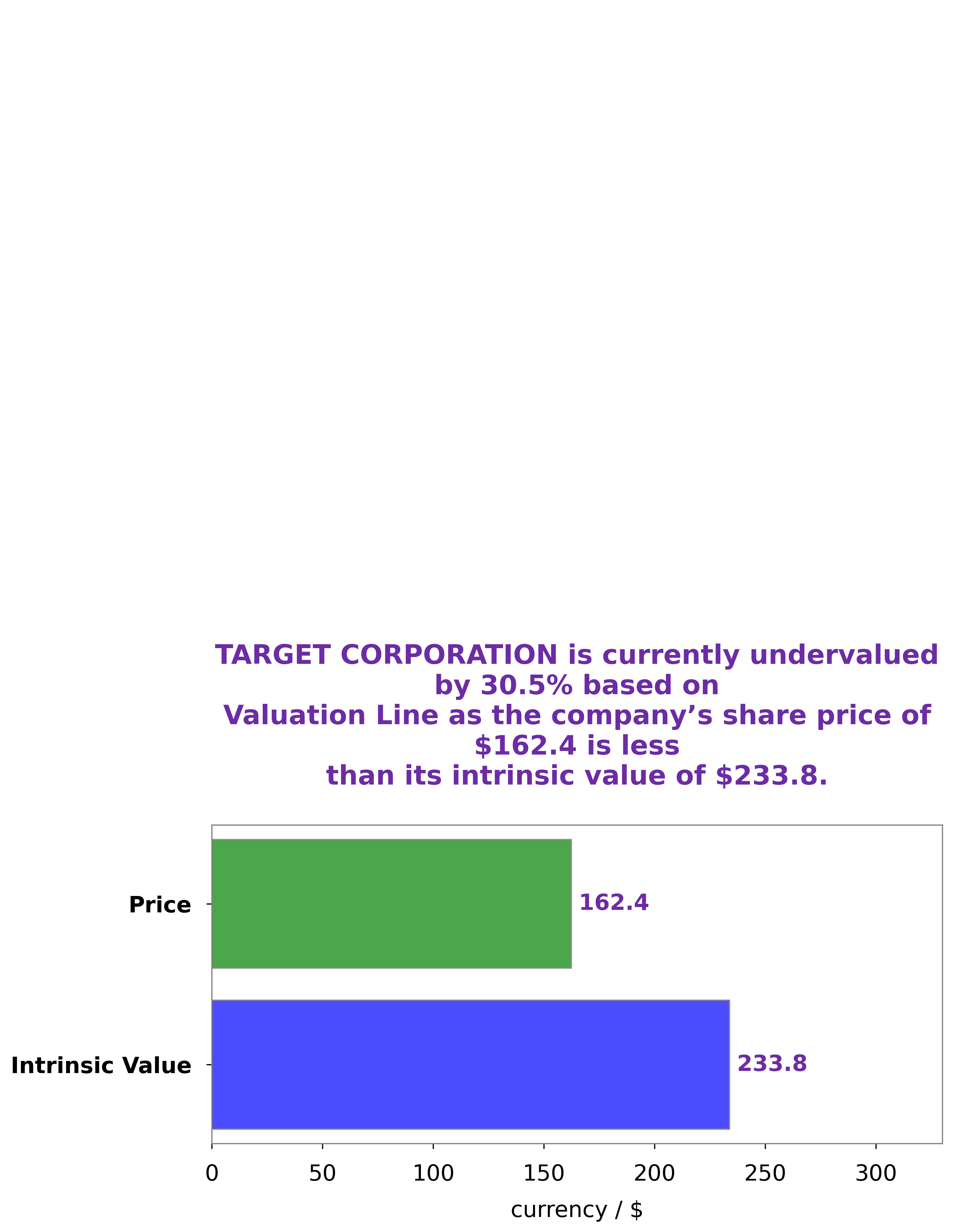 At GoodWhale, we recently conducted an analysis of TARGET CORPORATION‘s financials. After taking into account the company’s financial metrics, our proprietary Valuation Line suggested that the fair value of TARGET CORPORATION stock is around $233.8. Currently, TARGET CORPORATION stock is trading at $162.4, which is undervalued by 30.5%. This presents a great opportunity for investors to buy into this promising corporation at a discounted price. More…