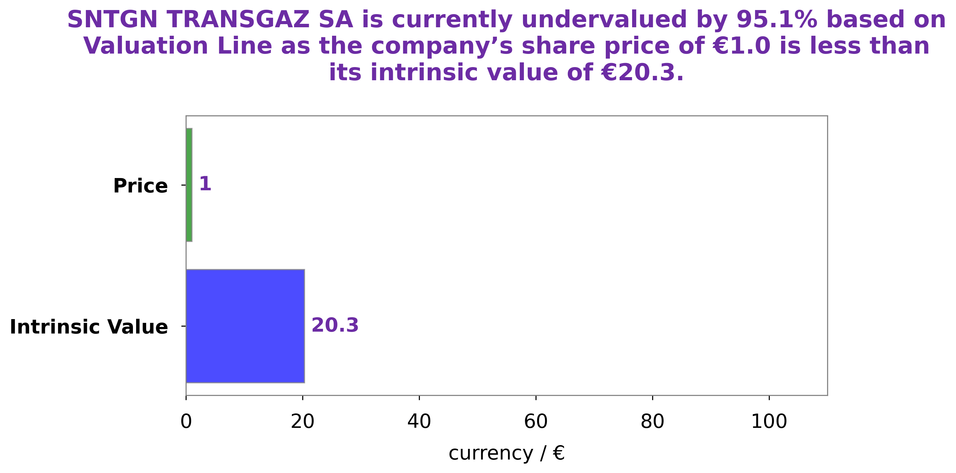 At GoodWhale, we have conducted a thorough analysis of SNTGN TRANSGAZ SA’s financials. According to our proprietary Valuation Line, the intrinsic value of SNTGN TRANSGAZ SA share is around €20.3. However, its current market price stands at €1.0, which means that the stock is undervalued by an extraordinary 95.1%. Therefore, we recommend SNTGN TRANSGAZ SA as a lucrative investment opportunity. More…