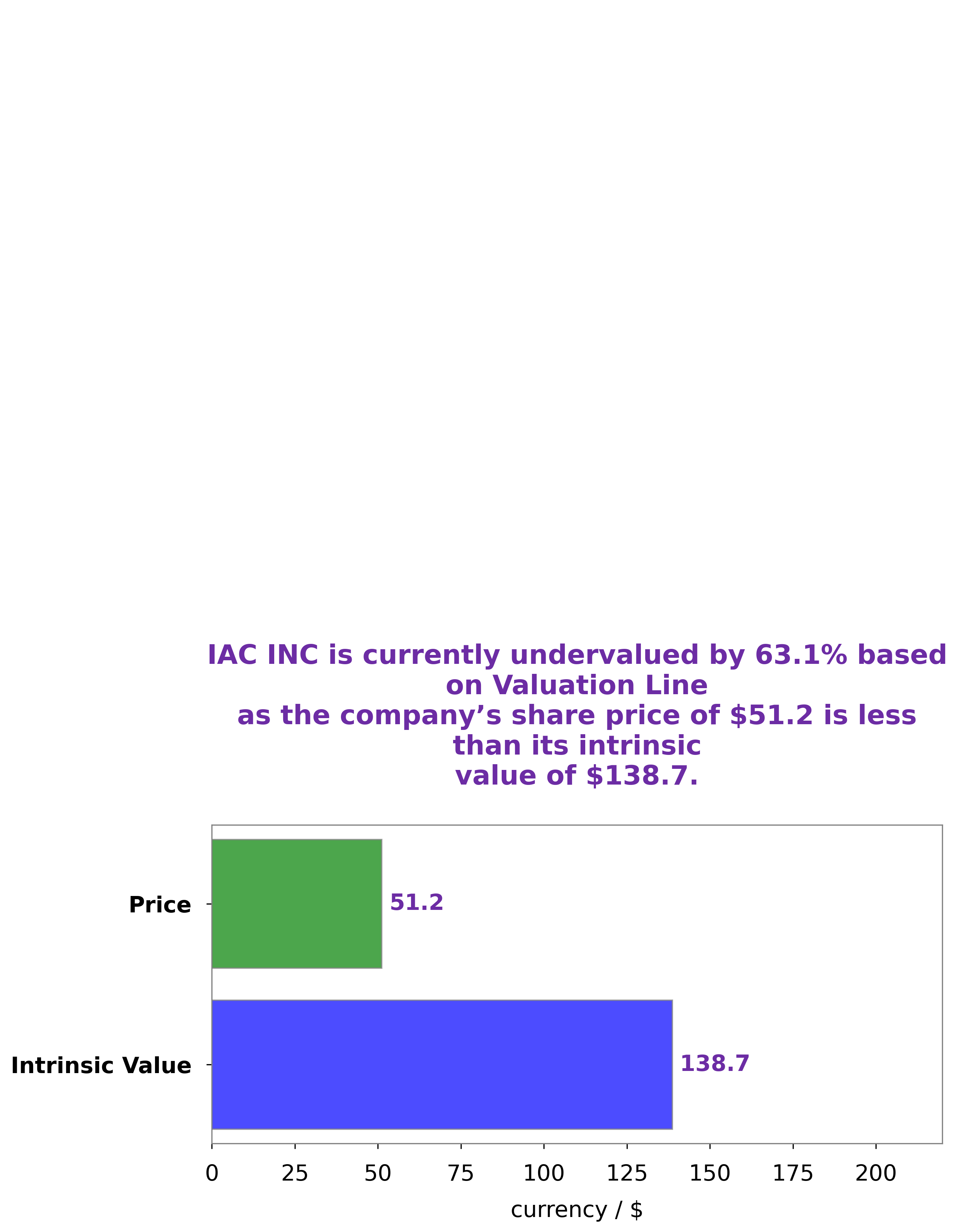 At GoodWhale, we have conducted an analysis of IAC INC‘s fundamentals. Our proprietary Valuation Line has calculated the fair value of IAC INC’s share to be around $138.7. Currently, IAC INC share is traded at $51.2, which is significantly undervalued by 63.1%. This presents a great opportunity to buying the stock at a discount price now and selling it at a higher price in the future. More…
