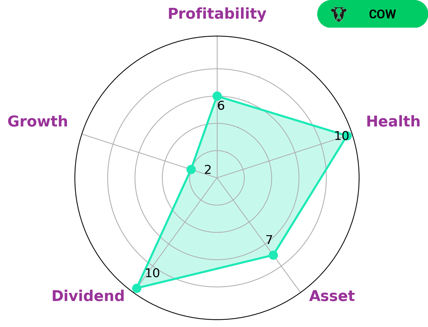 At GoodWhale, we have conducted a detailed financial analysis of JAPAN WOOL TEXTILE and the results are quite impressive. Our star chart shows that JAPAN WOOL TEXTILE has an extraordinary high health score of 10/10, indicating that it is in top-notch condition with regards to its cashflows and debt. This means that JAPAN WOOL TEXTILE is capable of sustaining future operations in times of crisis. Additionally, JAPAN WOOL TEXTILE is classified as a ‘cow’, a type of company we conclude has the track record of paying out consistent and sustainable dividends, making it very attractive to investors. The company is strong in terms of its asset and dividend strength, with medium profitability and weak growth. Overall, our analysis shows that JAPAN WOOL TEXTILE is a reliable company that could be a great addition to any investor’s portfolio. Its strong financials and dividend payouts make it an attractive option for those looking for steady returns. More…