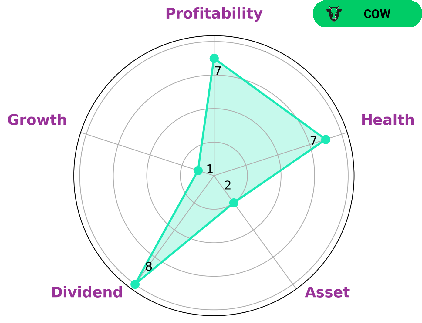 GoodWhale has performed an analysis of JOHN WILEY & SONS’s financials to uncover their performance across specific areas. The Star Chart displays that JOHN WILEY & SONS is strong in dividend and profitability but weak in assets and growth. Despite its weak assets, JOHN WILEY & SONS has a high health score of 7/10. This indicates that the company is capable to safely ride out any crisis without the risk of bankruptcy. Furthermore, the company is classified as a ‘cow’ due to its track record in paying out consistent and sustainable dividends. Given the company’s strong dividend and profitable nature, this type of company may be attractive to investors who are looking for a long-term stock with reliable returns. Such investors may also be interested in the company’s ability to withstand any economic crises due to its high health score. More…
