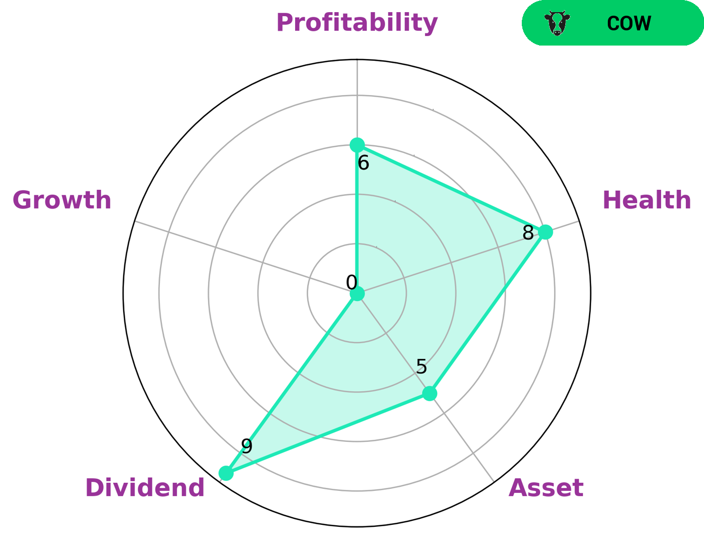 The VI app simplifies the analysis of WHIRLPOOL CORPORATION‘s fundamentals, which reflect its long-term potential. The VI Star Chart shows that WHIRLPOOL CORPORATION has a high health score of 8/10 considering its cashflows and debt, indicating its ability to pay off debt and fund future operations. It is strong in dividend, medium in asset, profitability and weak in growth. WHIRLPOOL CORPORATION is classified as a ‘cow’, a type of company that has the track record of paying out consistent and sustainable dividends. Investors who are looking for stable returns and are less concerned about the growth potential of a company may consider investing in WHIRLPOOL CORPORATION. Such investors may include long-term investors who are looking to diversify their portfolio and want to invest in companies that have a low risk of capital loss.