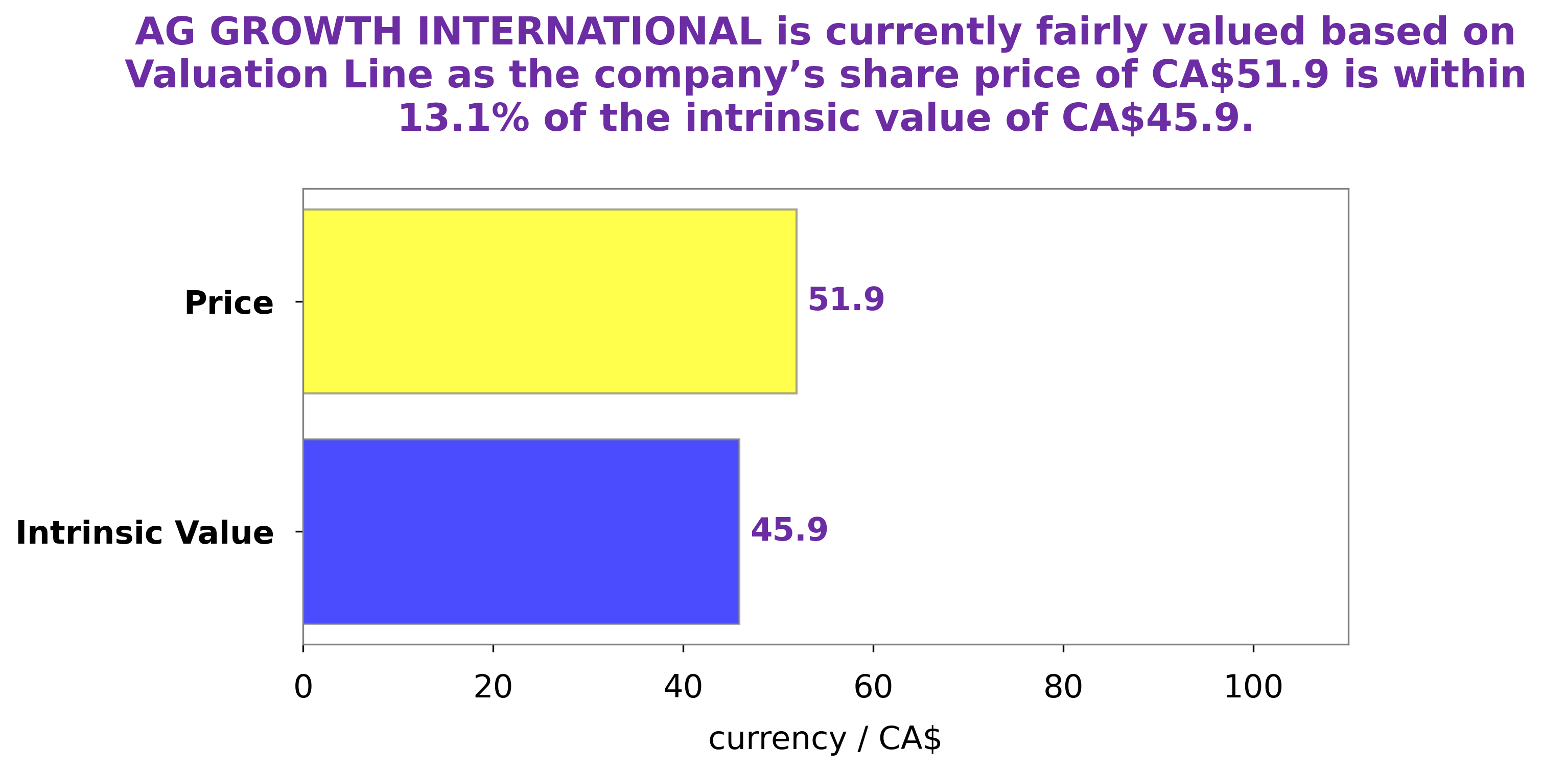 At GoodWhale, we have conducted an analysis of AG GROWTH INTERNATIONAL’s wellbeing. The results of this analysis suggest that the fair value of AG GROWTH INTERNATIONAL share is around CA$45.9. This figure has been calculated by our proprietary Valuation Line, which takes into account factors such as the company’s current performance, expected future growth, and overall risk profile. This suggests that investors may not be properly accounting for the company’s risk profile. As such, it is possible that the current stock price may be unsustainable in the long-term. More…