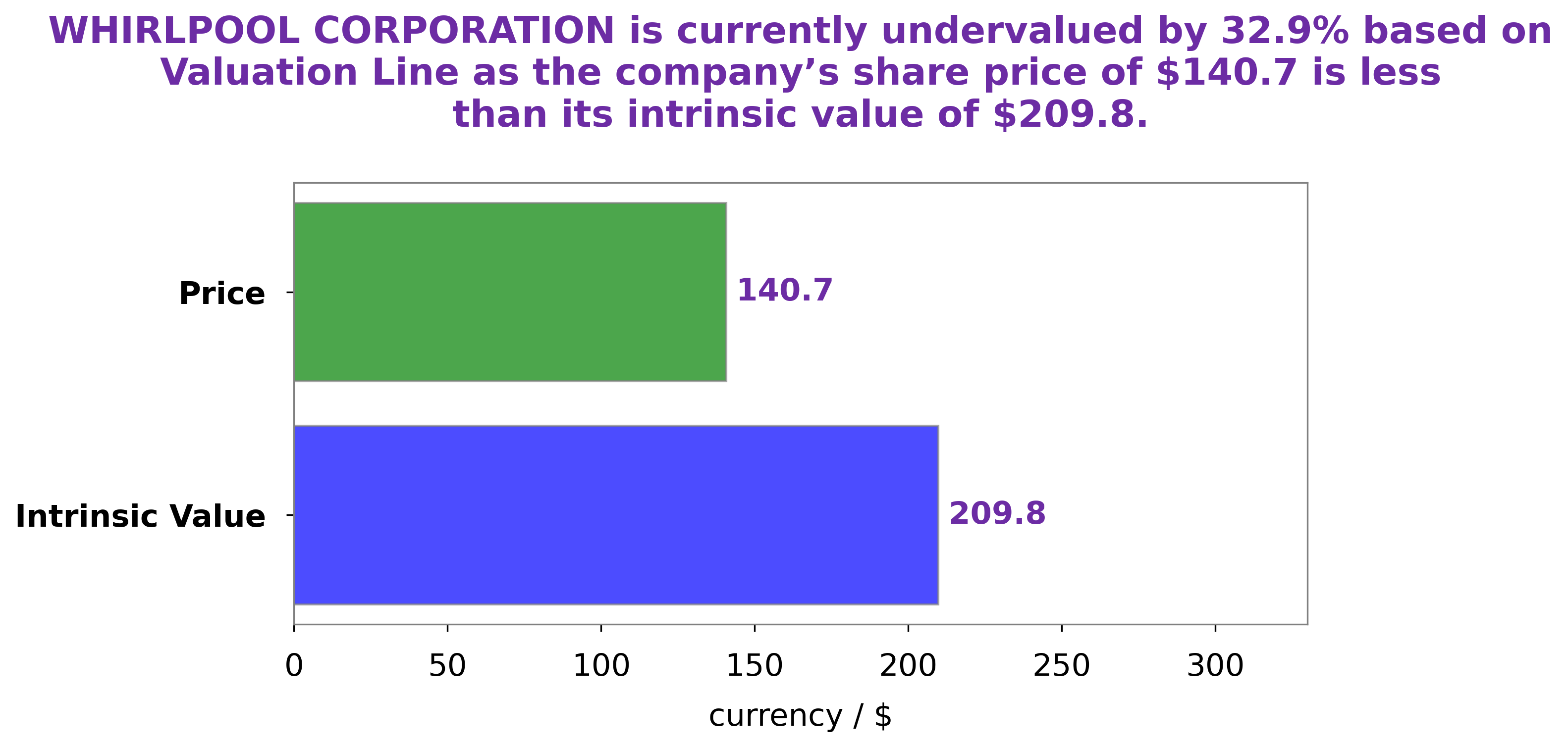 At GoodWhale, we are dedicated to helping investors gain valuable insights into WHIRLPOOL CORPORATION’s financial performance. We’ve recently calculated the fair value of WHIRLPOOL CORPORATION’s stock to be around $209.8 using our proprietary Valuation Line. This suggests that the current price of $140.7 is undervalued by 32.9%. With this information, investors can make more informed decisions on their investments in WHIRLPOOL CORPORATION. More…