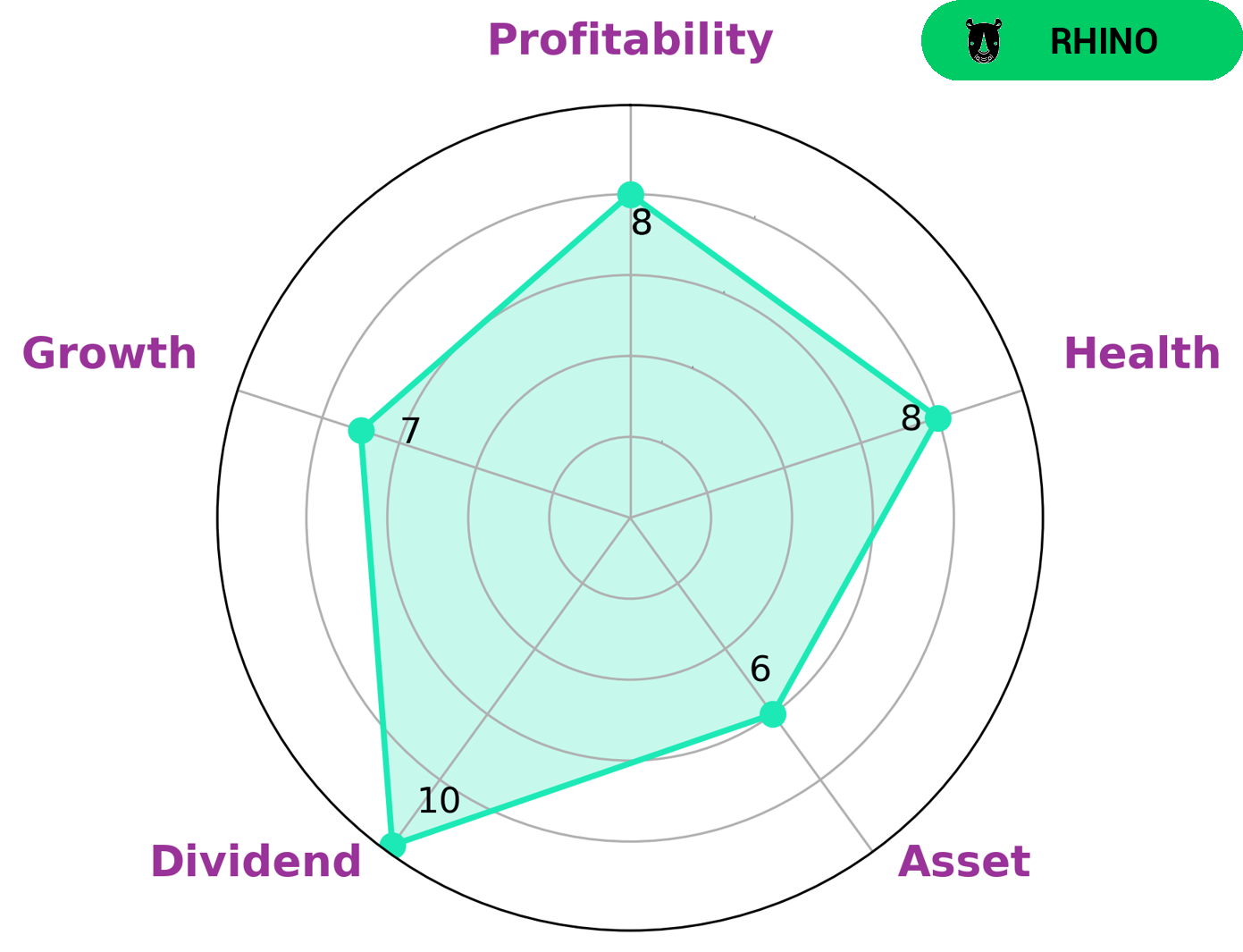 The VI app provides a simple overview of the company’s performance across a range of factors. In particular, the VI Star Chart indicates that MIDEA GROUP is strong in dividend, growth, profitability and medium in asset. The company’s health score of 8/10 indicates that it is well-positioned to weather any economic storms without the risk of bankruptcy. MIDEA GROUP is classified as a ‘rhino’, a company that has achieved moderate revenue or earnings growth. This type of company may be of interest to investors looking for steady returns with limited risk. Such investors may also appreciate the strong dividend prospects and profitability the company offers. Additionally, its mid-level assets point to a company with moderate growth potential, making it attractive to investors looking for a combination of capital appreciation and dividend income. More…