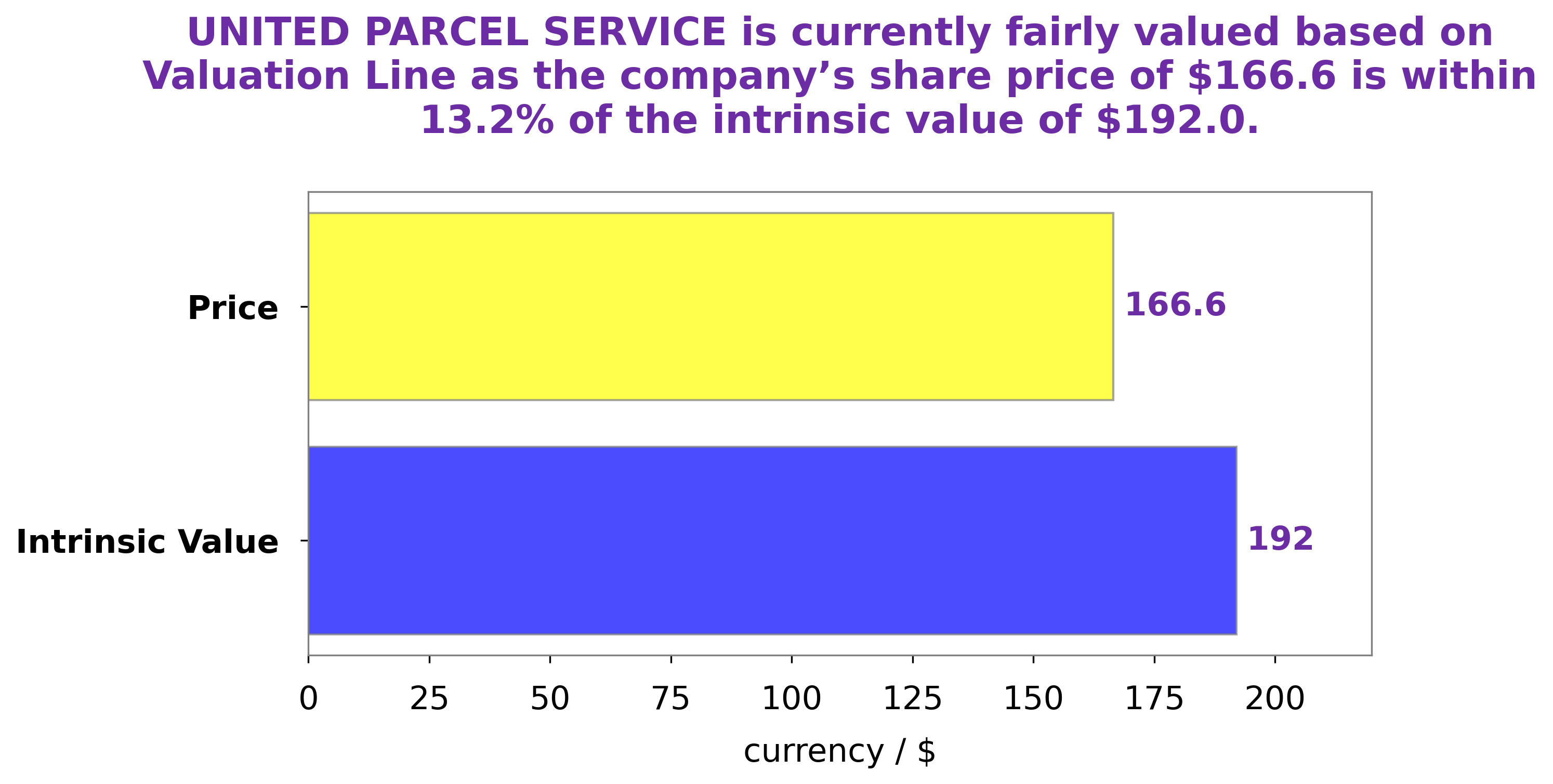 At GoodWhale, we have conducted an analysis of UNITED PARCEL SERVICE’s financials. After our proprietary Valuation Line was applied, we determined that the intrinsic value of UNITED PARCEL SERVICE share is around $192.0. Currently, the share price is traded at $166.6, making it a fair price that is undervalued by 13.2%. More…