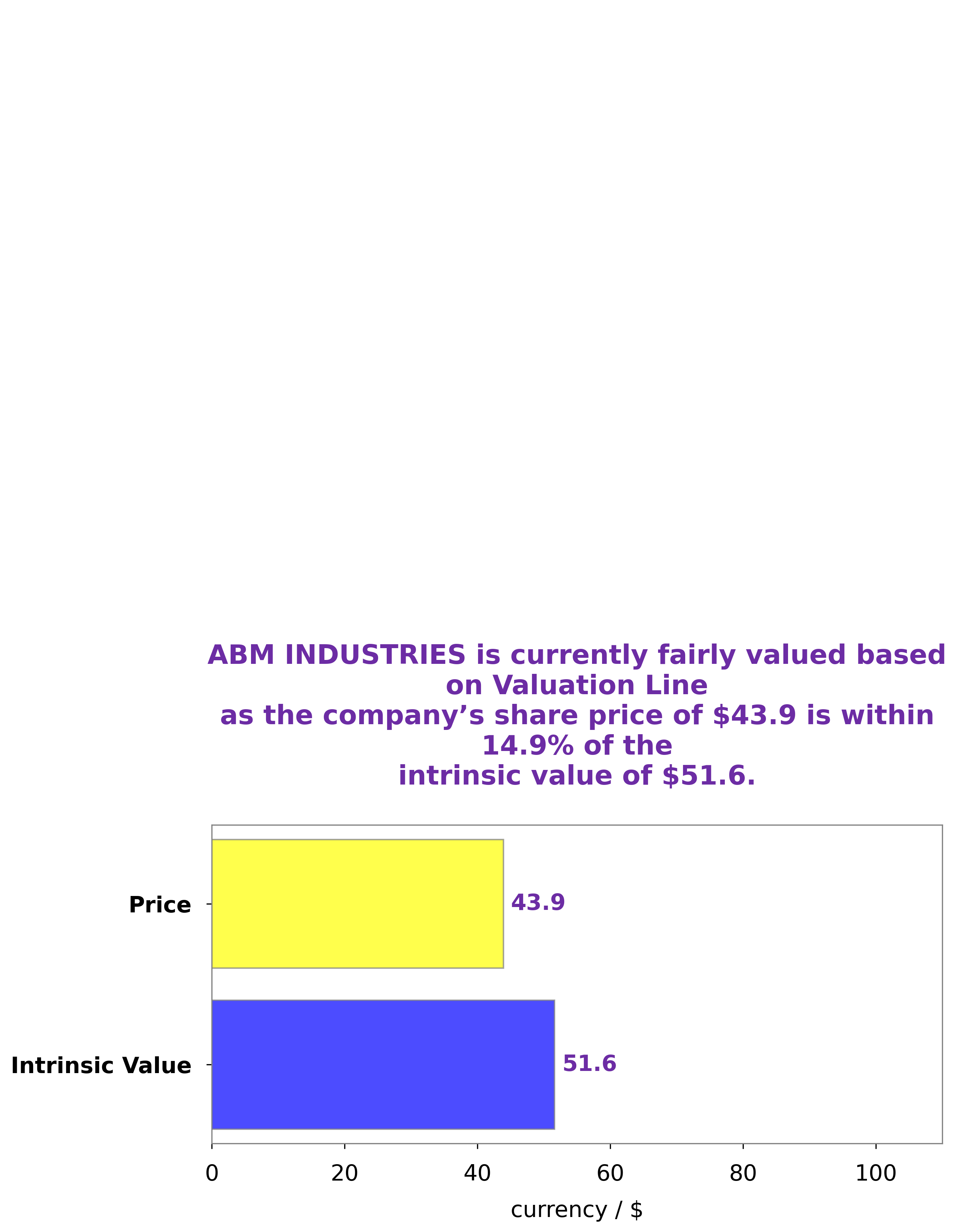 We at GoodWhale recently conducted a thorough analysis of ABM INDUSTRIES‘s wellbeing. Our proprietary Valuation Line pinpointed the intrinsic value of ABM INDUSTRIES’s share to be around $51.6. However, the current market price for ABM INDUSTRIES stock is $43.9, making it a fair price that is undervalued by 15.0%. We believe investors should take this opportunity to purchase ABM INDUSTRIES stock while it is still undervalued. More…
