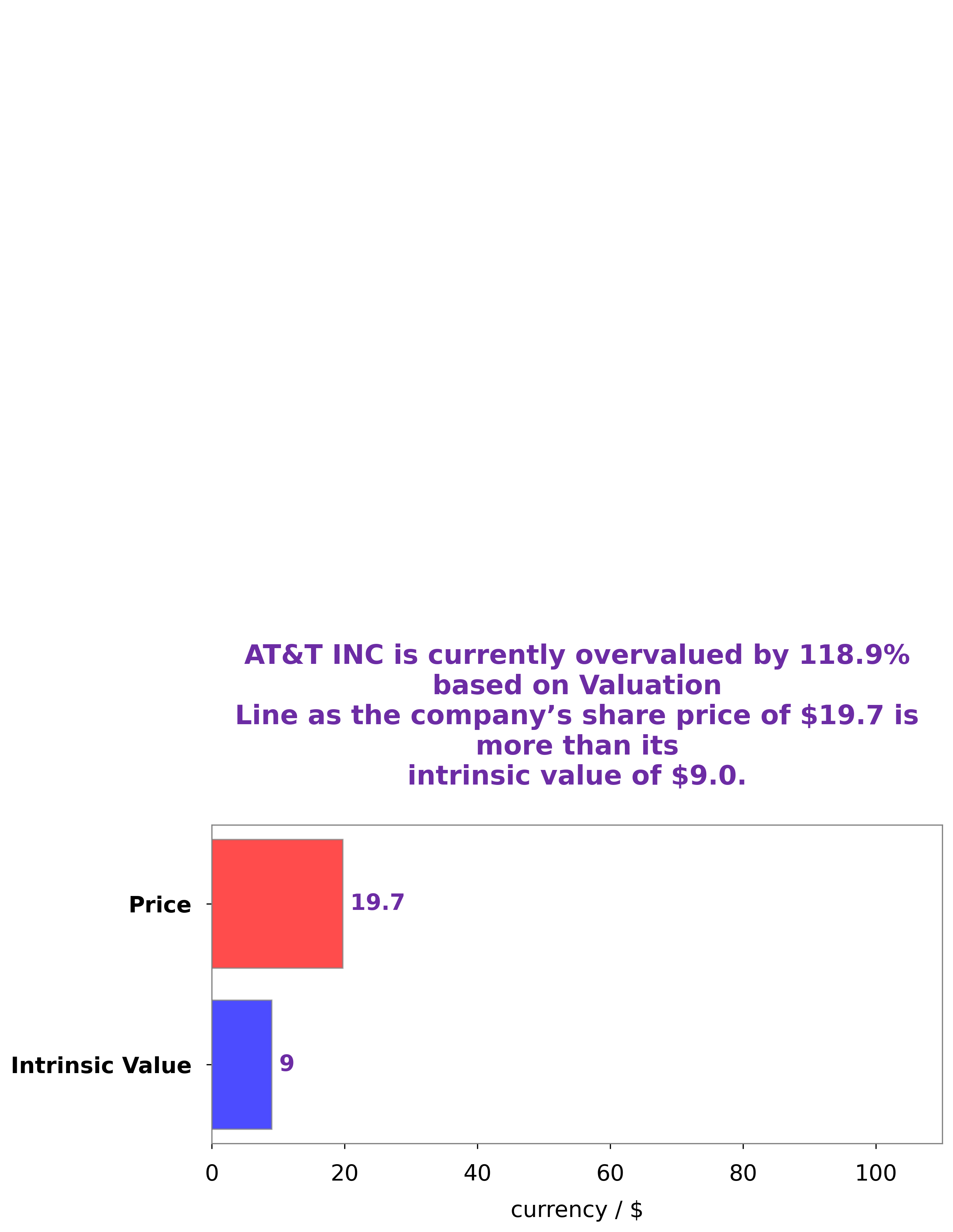 At GoodWhale, we conducted an analysis of AT&T INC‘s fundamentals to determine its intrinsic value. Using our proprietary Valuation Line, we determined that the intrinsic value of AT&T INC’s share is around $9.0. However, the current price of AT&T INC stock is $19.7, which means it is currently being overvalued by 119.5%. This could be a potential opportunity for investors who may want to buy AT&T INC stock at a lower price, as the current overvaluation indicates that it could be trading below its intrinsic value in the near future. More…