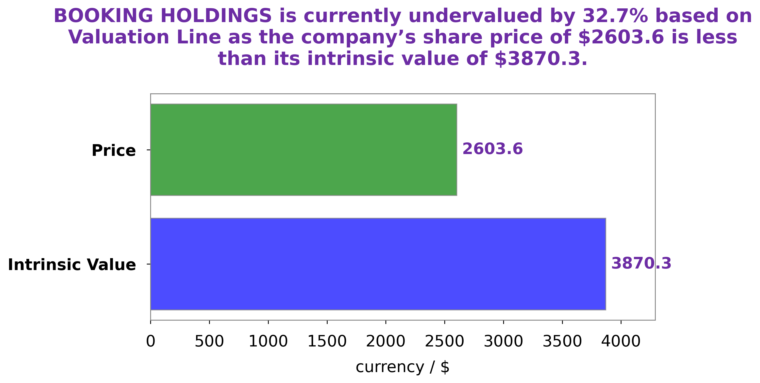 GoodWhale recently conducted an analysis of BOOKING HOLDINGS‘ wellbeing. After meticulous research and analysis, our proprietary Valuation Line concluded that the fair value of BOOKING HOLDINGS’ share is around $3870.3. However, at this moment, BOOKING HOLDINGS’ stock is traded at $2603.6, which is undervalued by 32.7%. This presents a great opportunity for investors to gain a significant return on investment. More…