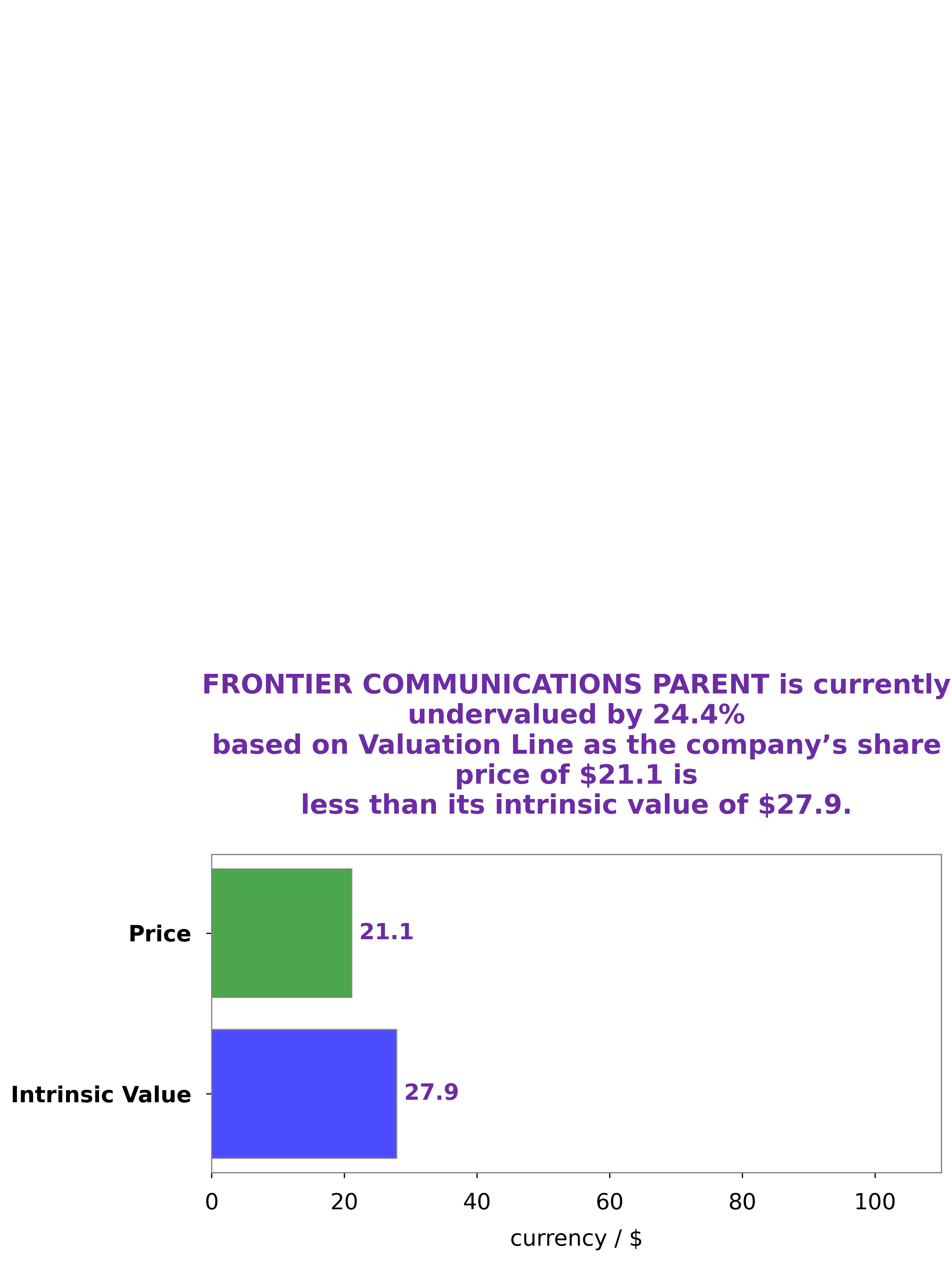 At GoodWhale, we recently conducted a financial analysis of FRONTIER COMMUNICATIONS PARENT. After conducting our calculations, we determined that the intrinsic value of a FRONTIER COMMUNICATIONS PARENT share is around $27.9 through our proprietary Valuation Line. This means that FRONTIER COMMUNICATIONS PARENT stock is currently trading at $21.1, which is undervalued by 24.5%. This presents a great opportunity for investors looking for potential returns in the near future. More…