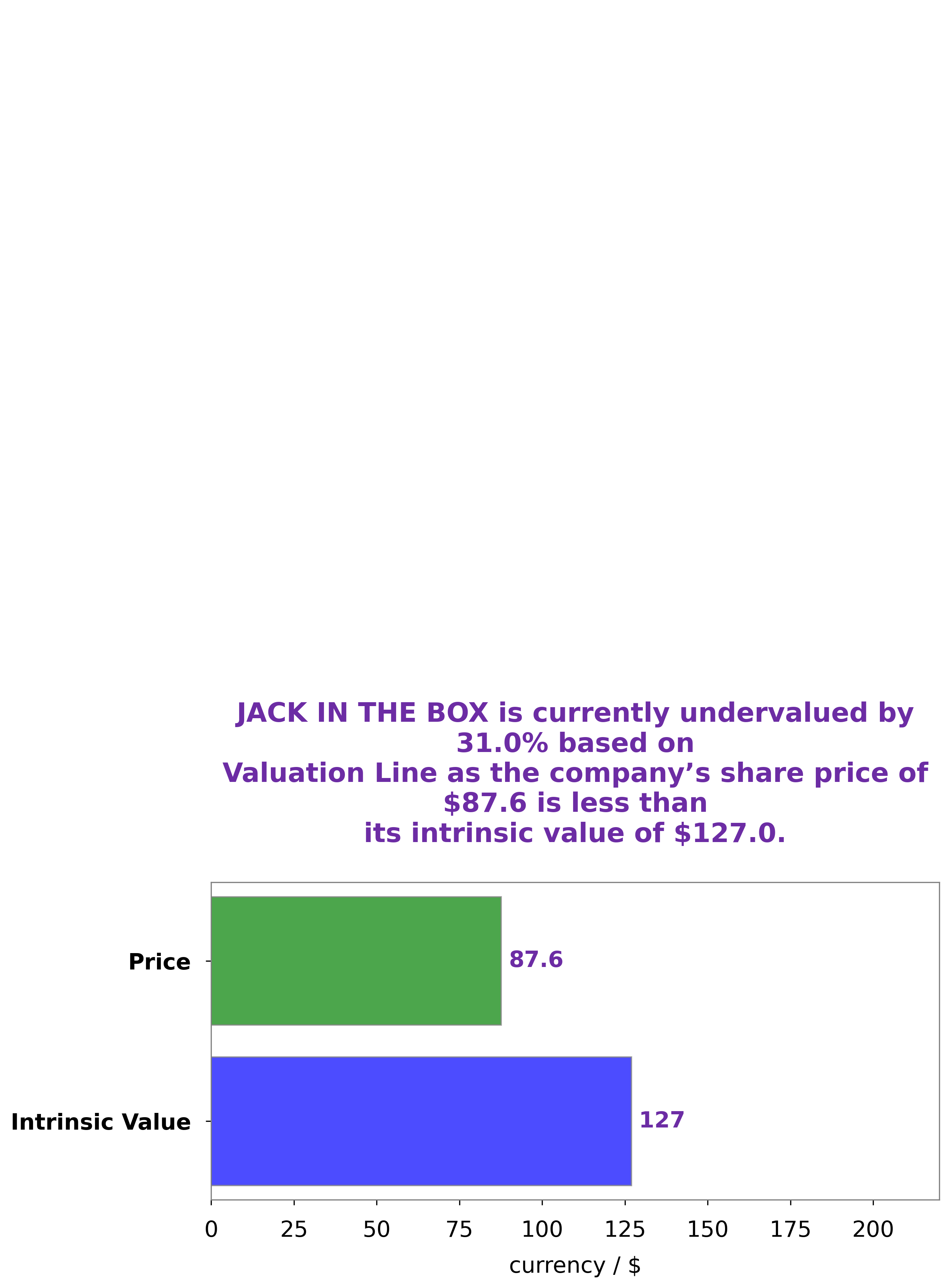 At GoodWhale, we recently conducted an analysis of JACK IN THE BOX’s wellbeing. After extensive research and evaluation, our proprietary Valuation Line gave us an intrinsic value of JACK IN THE BOX shares of approximately $127.0. However, the stock is currently being traded at $87.6, creating an undervalued opportunity of 31.0%. This could be an interesting option for investors looking for a potential long-term gain. More…