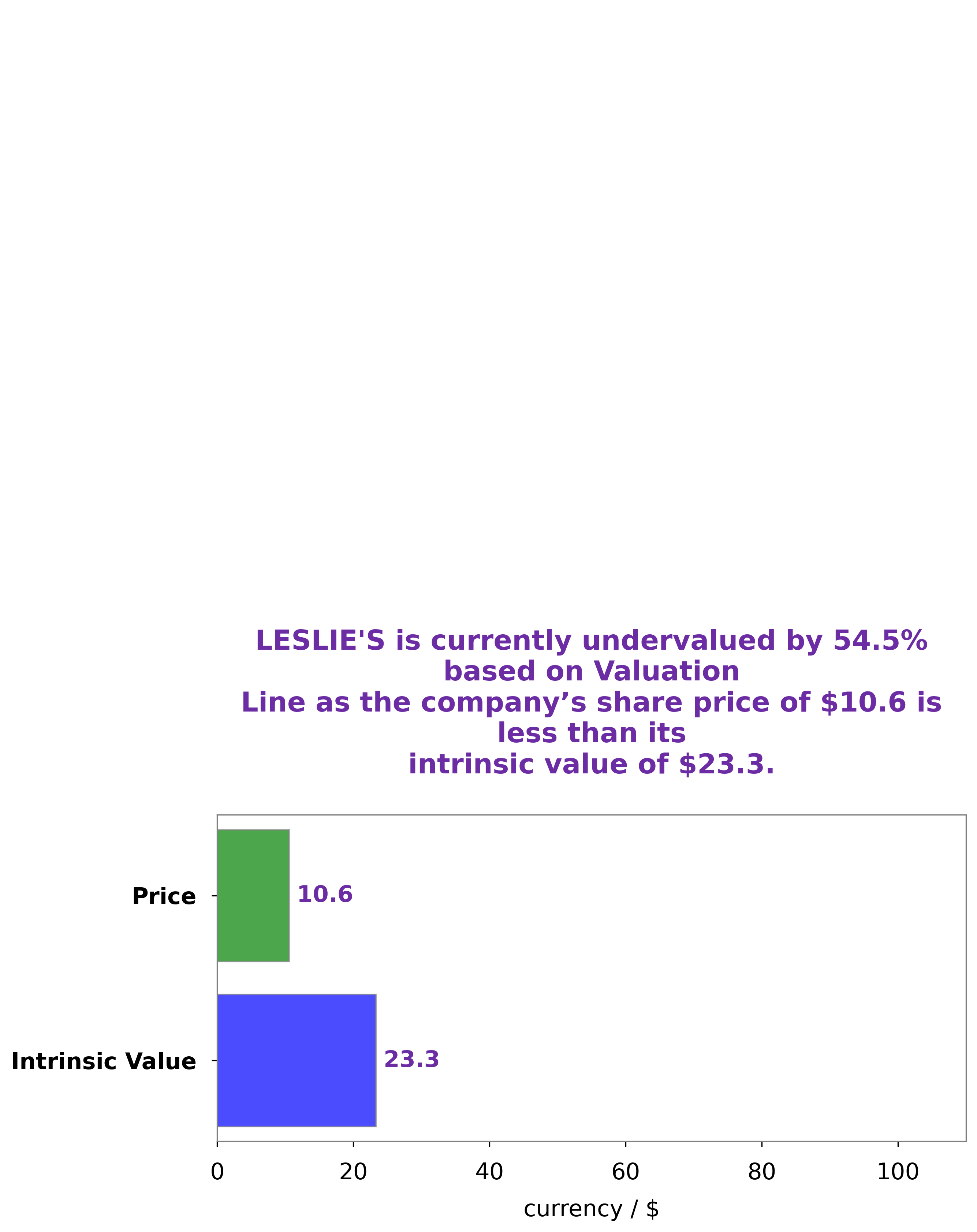 We have performed a comprehensive analysis of LESLIE’S fundamentals, and our proprietary Valuation Line reveals that the intrinsic value of the share is around $23.3. Currently, the stock is trading at $10.6, which represents an undervaluation of 54.5%. We believe this presents a great opportunity for investors to gain exposure to LESLIE’S at an advantageous price. More…