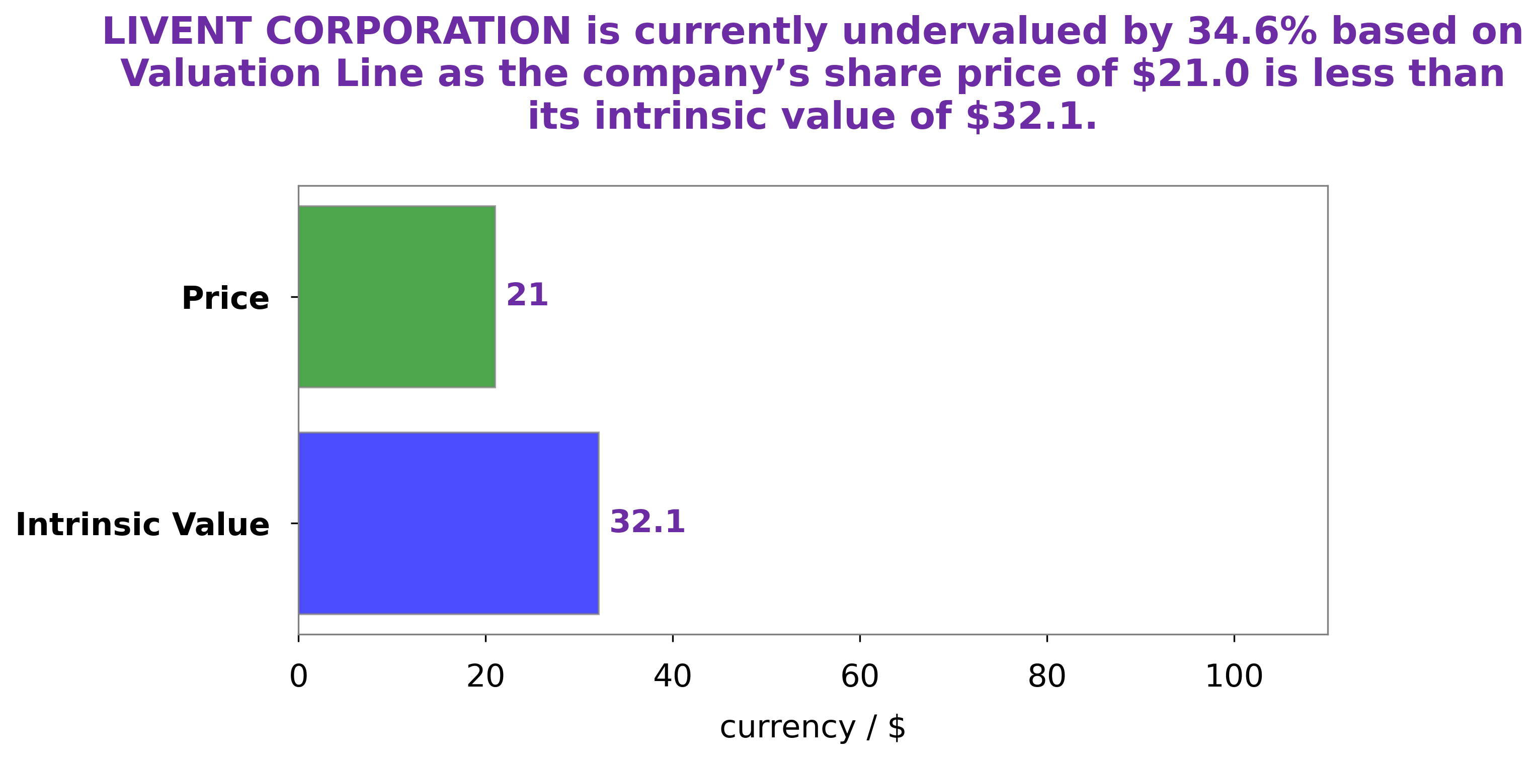 We at GoodWhale have conducted an in-depth analysis of LIVENT CORPORATION‘s fundamentals. Through our proprietary Valuation Line, we estimate the fair value of LIVENT CORPORATION to be around $32.1. Yet, it is currently being traded at $21.0, meaning that the stock is undervalued by 34.5%. As such, investors may have the opportunity to benefit from buying the stock at a discounted price. More…