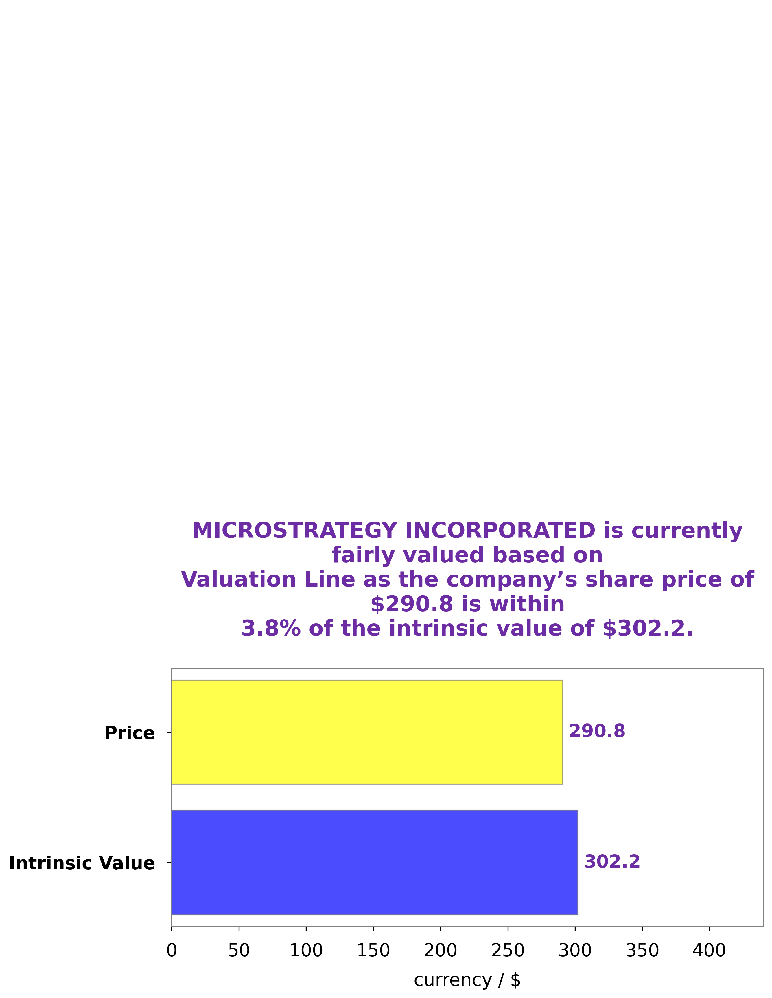 At GoodWhale, we have conducted an analysis of the financials of MICROSTRATEGY INCORPORATED. Our proprietary Valuation Line has arrived at a fair value of around $302.2 for the company’s stock. Currently, the stock is traded at $290.8, indicating that it is a fair price that is undervalued by 3.8%. This is an opportune time to invest in MICROSTRATEGY INCORPORATED if you are looking to take advantage of the undervalued prices. More…