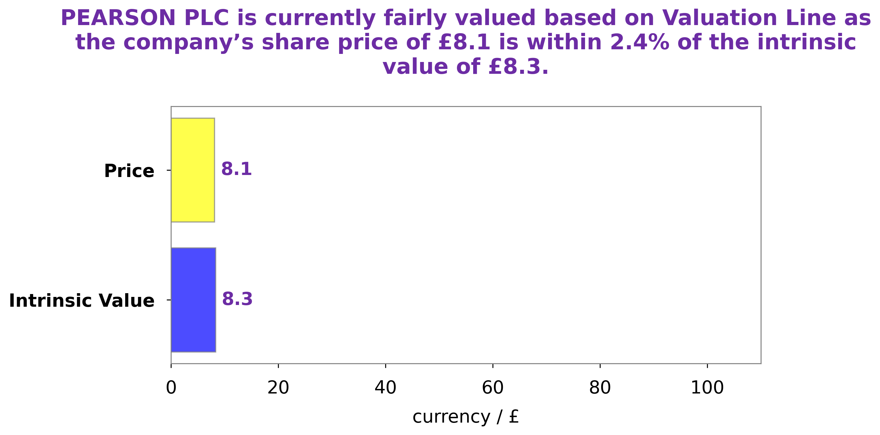 At GoodWhale, we have conducted a detailed analysis of PEARSON PLC‘s financials. According to our proprietary Valuation Line, the fair value of PEARSON PLC share is around £8.3. However, the stock is currently traded at £8.1, which implies that it is undervalued by 2.1%. Therefore, this presents an attractive opportunity for investors. More…