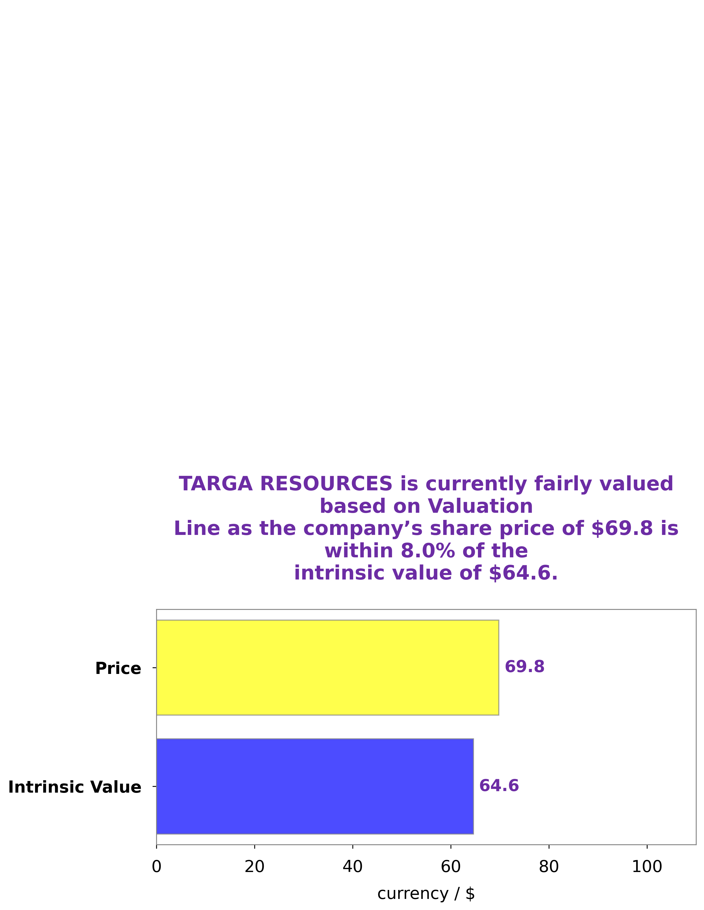 At GoodWhale, we have analyzed TARGA RESOURCES‘ wellbeing to determine its intrinsic value. Our proprietary Valuation Line has provided us with an estimated intrinsic value of TARGA RESOURCES’ share of approximately $64.6. Currently, the stock is trading at $69.8, which is a fair price that is slightly overvalued by 8.1%. Therefore, investors should be aware of this discrepancy and be mindful of the risk associated with investing in TARGA RESOURCES. More…