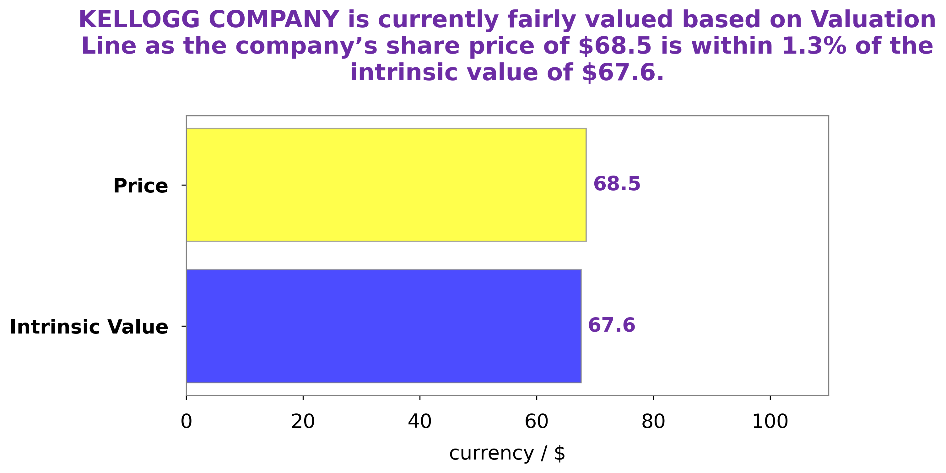 At GoodWhale, we conducted research on the fundamentals of KELLOGG COMPANY, and our proprietary Valuation Line has determined the fair value of a KELLOGG COMPANY share to be around $67.6. Currently, the market is trading KELLOGG COMPANY stock at $68.5, which is a fair price that is overvalued by 1.4%. This means that the opportunity to buy KELLOGG COMPANY shares at a discount is limited, though short-term investments may still be worthwhile if the stock trends upward. More…