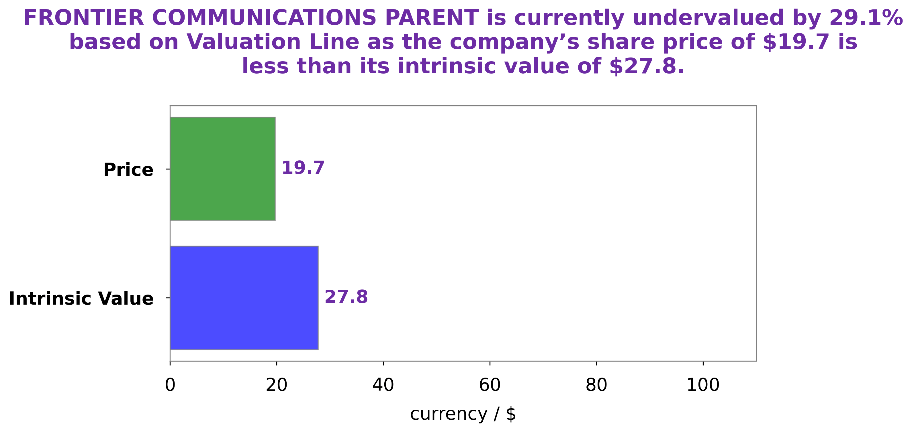 At GoodWhale, we have recently conducted an analysis of FRONTIER COMMUNICATIONS PARENT’s wellbeing. Our proprietary Valuation Line has calculated FRONTIER COMMUNICATIONS PARENT’s intrinsic value to be around $27.8. Currently, the stock is being traded at $19.7, which is a 29.1% undervaluation. This presents a great opportunity for potential investors to acquire shares of the company at a discounted rate. More…