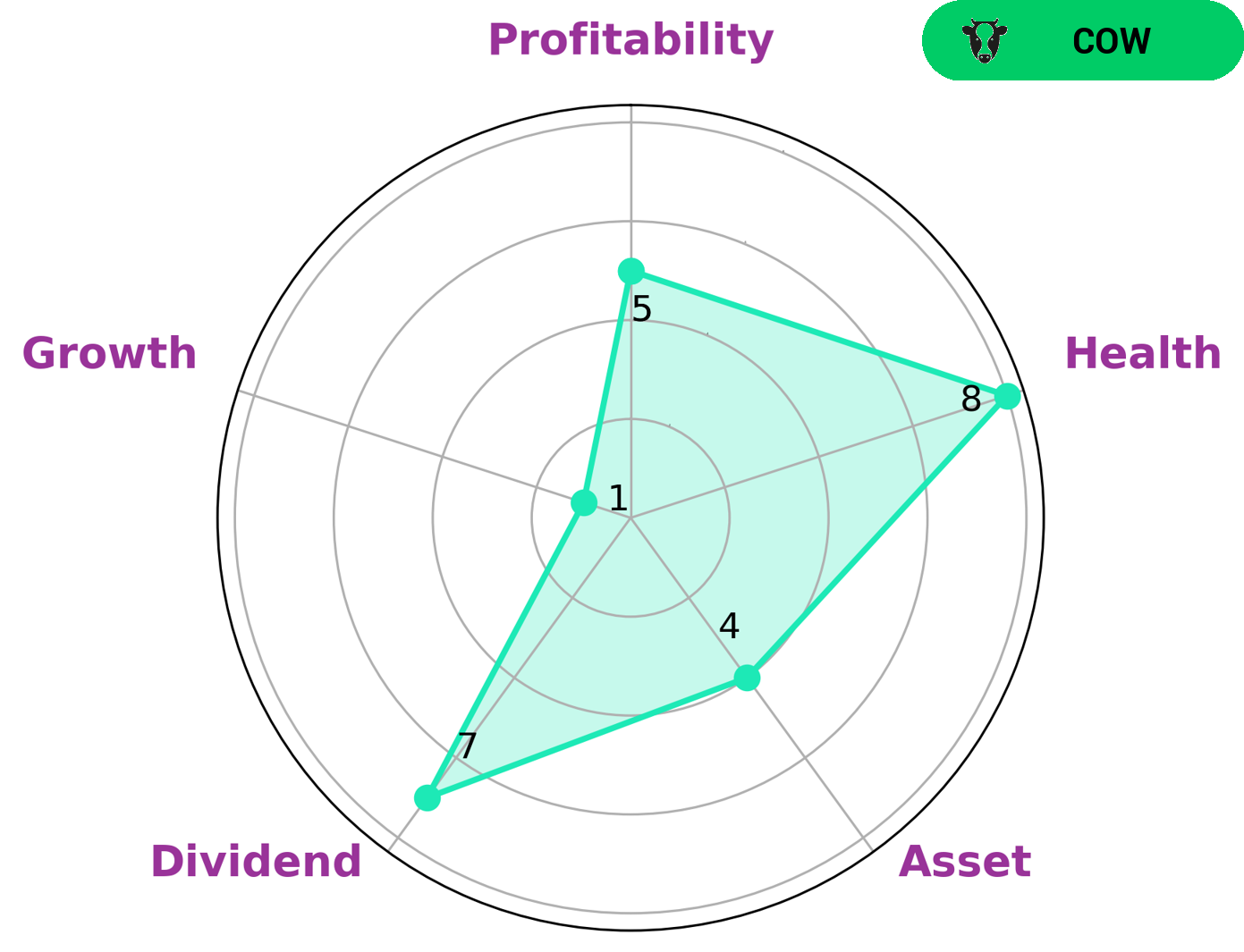 Shenandoah Telecommunications Company is an attractive investment option for those looking for a reliable and consistent dividend yield. Through the use of the VI Star Chart, it has been classified as a ‘cow’, representing a company with a solid track record of paying out dividends. Furthermore, Shenandoah Telecommunications Company has a high health score of 8 out of 10, indicating its ability to sustain future operations in times of crisis. When it comes to performance metrics, Shenandoah Telecommunications Company is strong in dividends, medium in assets, profitability and weak in growth. Investors that are looking for consistent returns with minimal risk would find Shenandoah Telecommunications Company as a strong candidate. Its fundamentals reflect its long-term potential, making it a secure option for investors seeking steady returns. Aside from its dividend yielding capabilities, Shenandoah Telecommunications Company is also a good choice for those looking for a low-risk option. With a high health score and a track record of consistent dividend payments, it is a safe investment option for those who want to minimize their risks. Its low-risk profile makes it an attractive option for investors who want to minimize their risks while still generating returns. Its high health score indicates that it is capable of sustaining operations even in times of crisis, making it an ideal choice for those looking for long-term stability and sustainability. More…