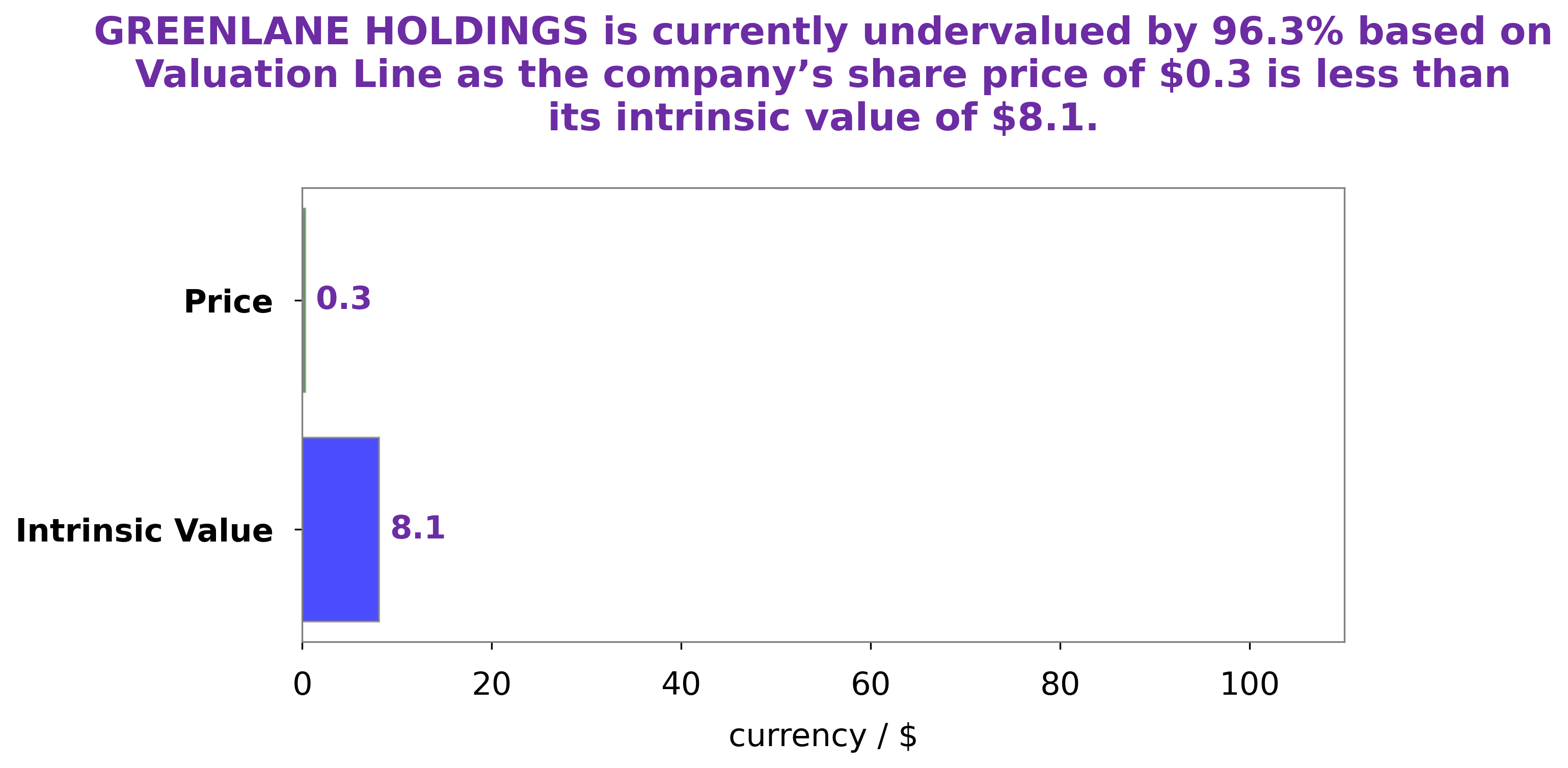 At GoodWhale, we have conducted a thorough analysis of GREENLANE HOLDINGS, taking into account all the fundamental data. Upon examination of this data, we have determined that the intrinsic value of GREENLANE HOLDINGS stock is around $8.1, using our proprietary Valuation Line. This means that the current market price of $0.3 is severely undervalued, to the tune of 96.3%. Our conclusion is that investing in GREENLANE HOLDINGS now could be a great opportunity, to gain a high return on investment. More…